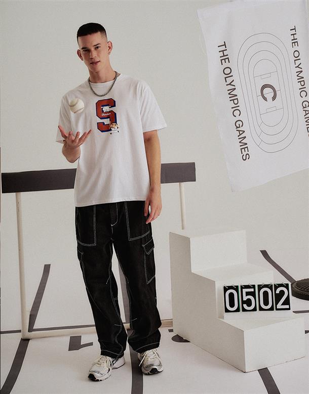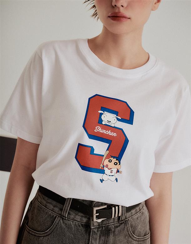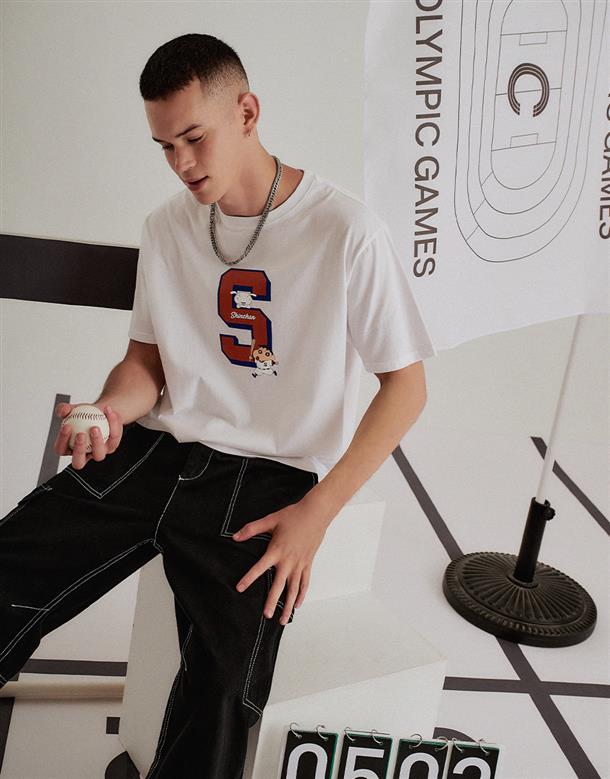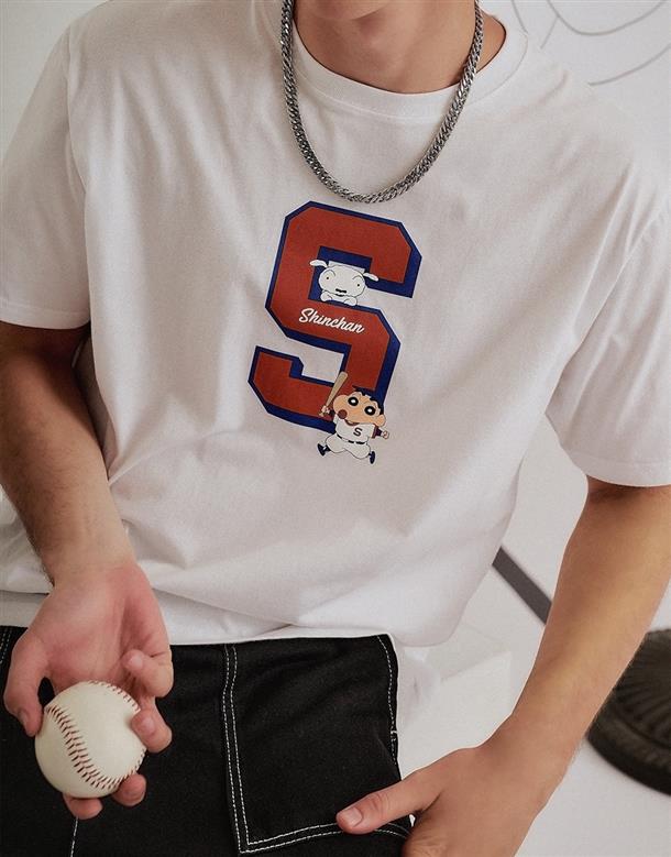 小新棒球運動風格印刷圖,舒適柔棉中性款短T。