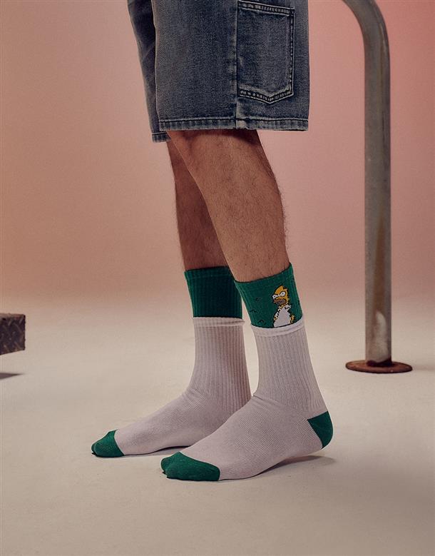 辛普森系列,荷馬雙層緹花撞色中長襪。
