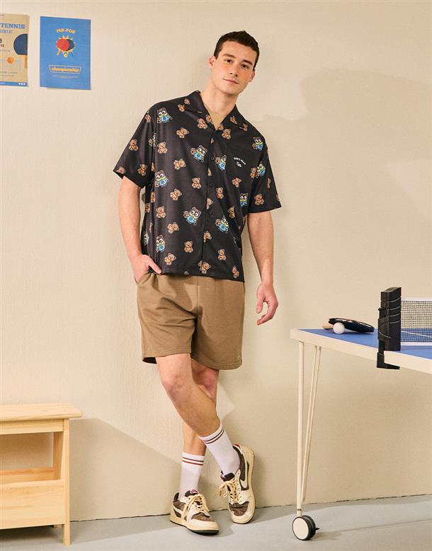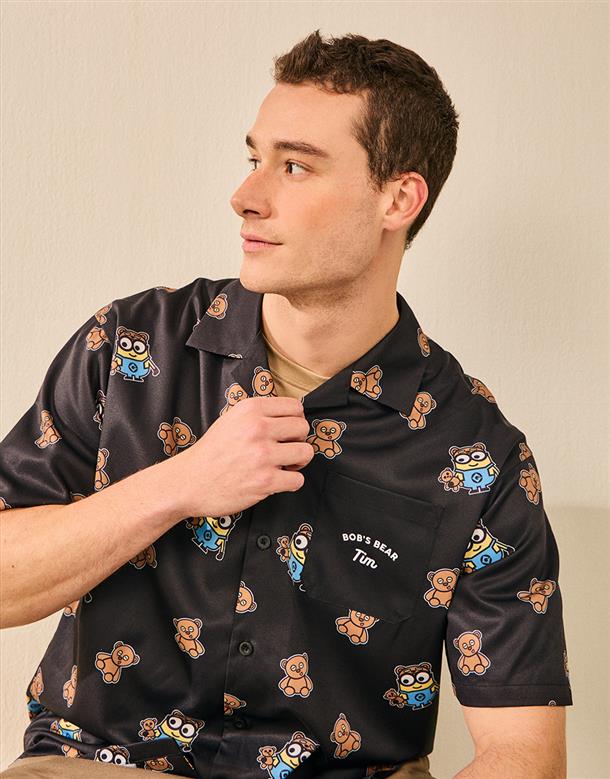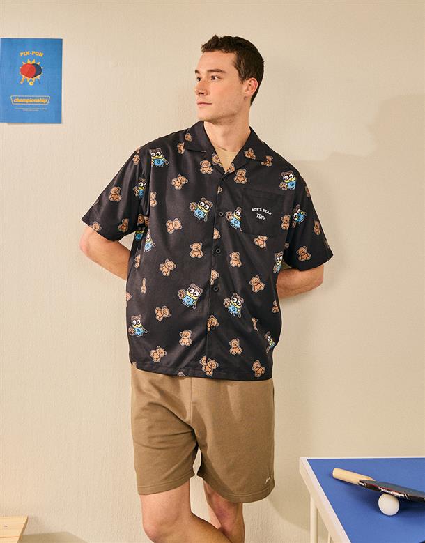 BOB & TIM滿版圖案設計,舒適穿搭古巴領開襟衫。