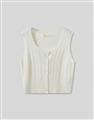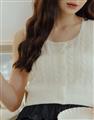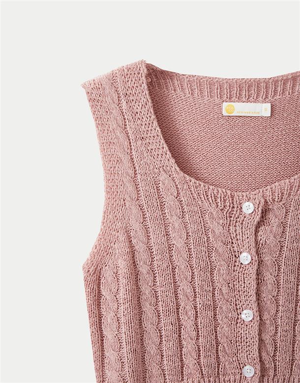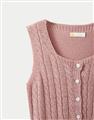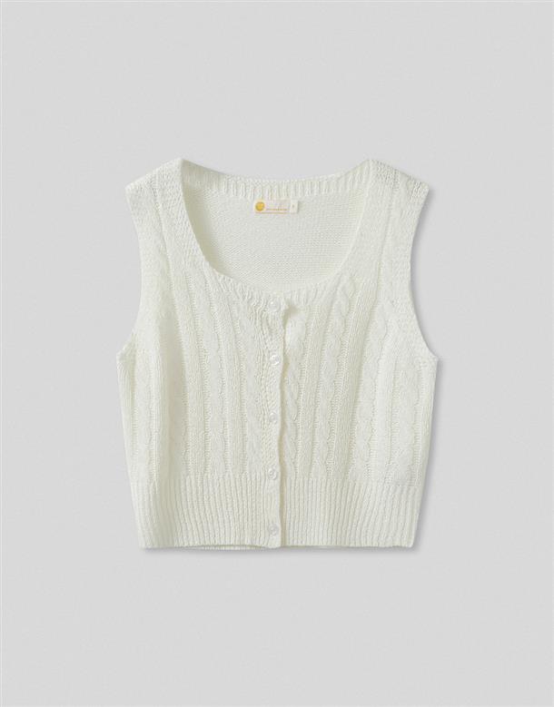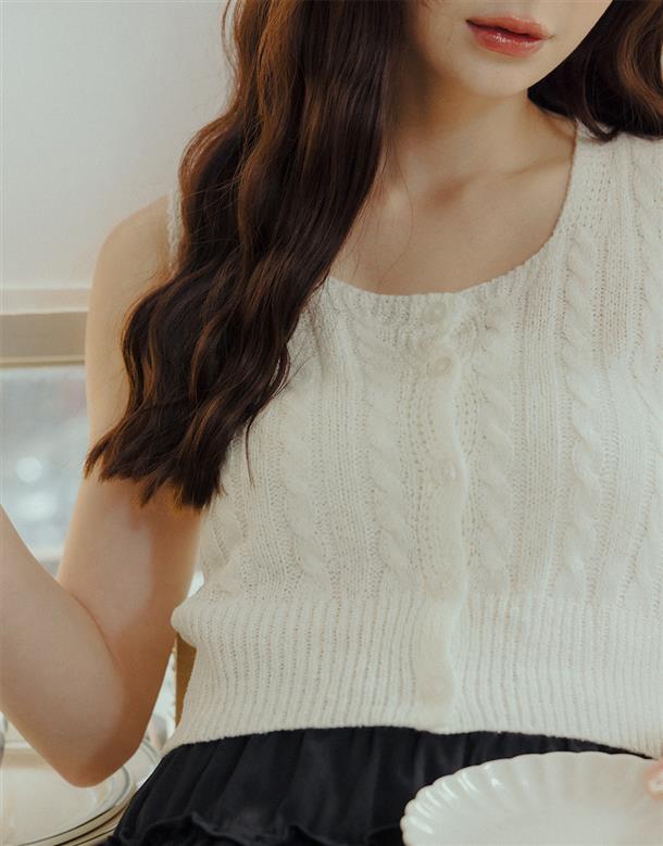 高彈鉤針麻花拼接毛織,正面開襟設計,下擺羅文縮口。