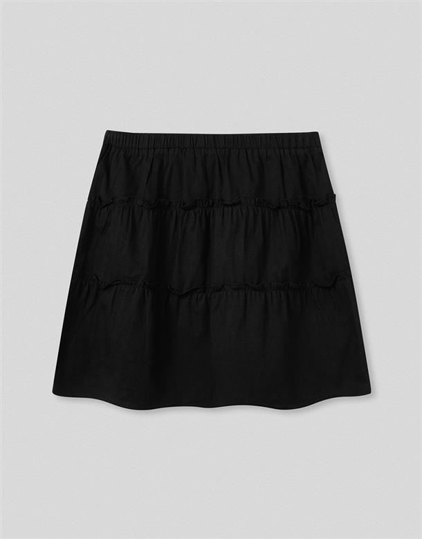 親膚麻棉面料,腰圍鬆緊帶好穿脫,層次拼接特殊設計,內有安全褲裡不走光。