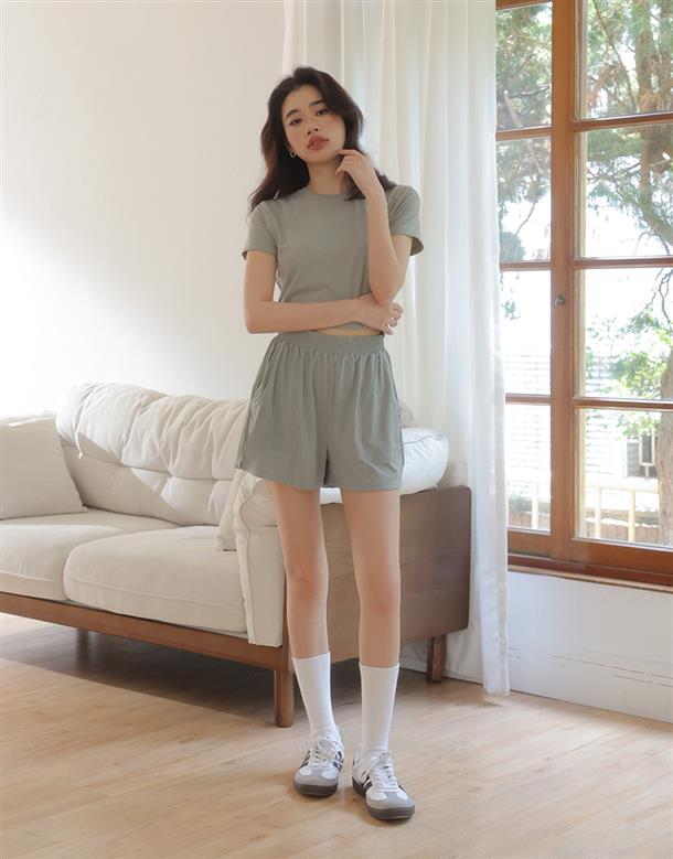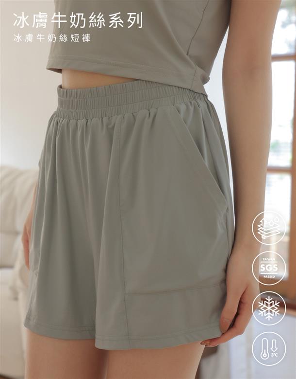 吸濕降溫冰感牛奶絲,體感瞬間降溫3度,腰圍整圈鬆緊帶,版型寬鬆,有口袋,貼合面料的轉印標設計,提升穿著舒適度