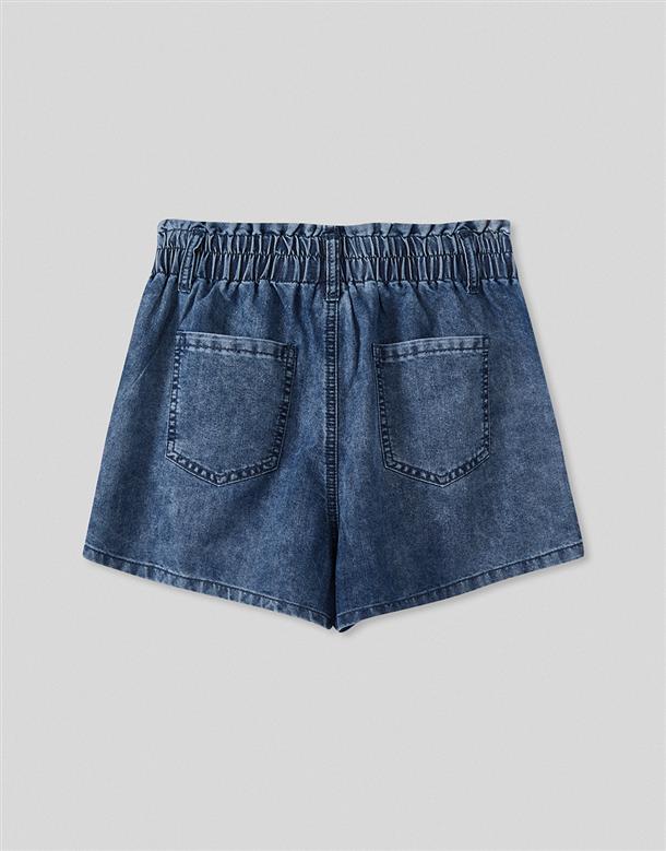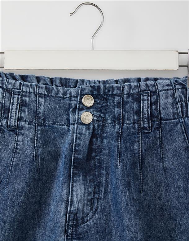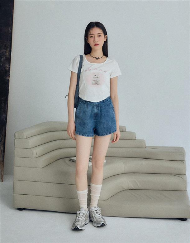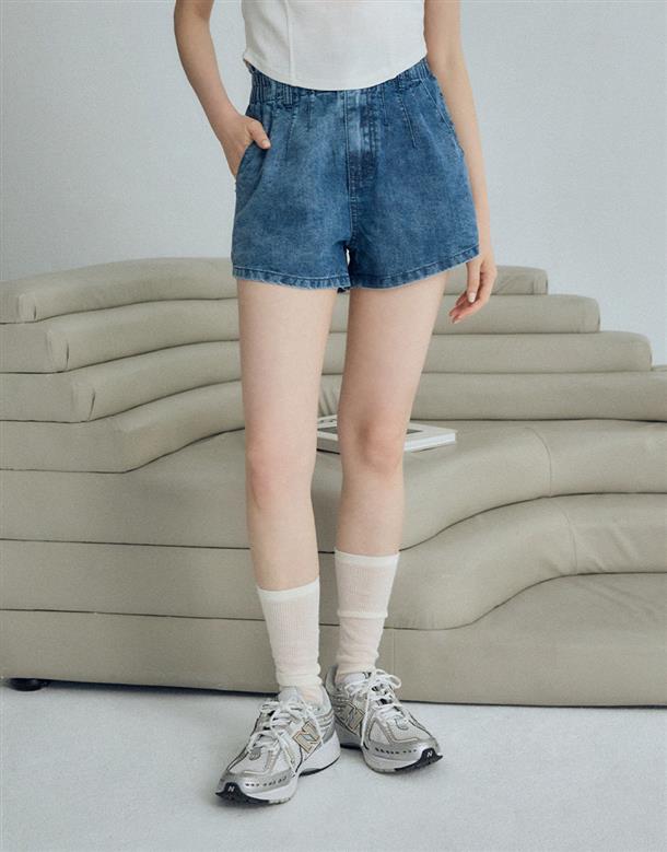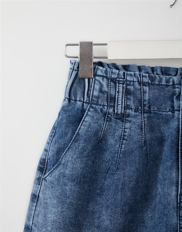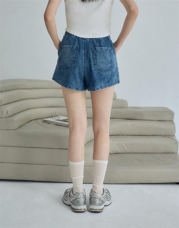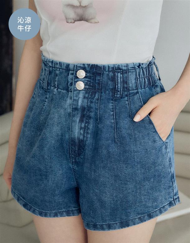 觸覺涼感無彈牛仔面料,吸濕排汗散熱效果佳,穿著感受能瞬間降溫2-3度,後腰做鬆緊帶,有口袋,寬褲口斜上角度極顯腿瘦