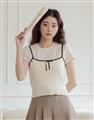 親膚純棉紗線,手感扎實但不悶熱,撞色設計,車固定蝴蝶結綁帶,肩帶不可調