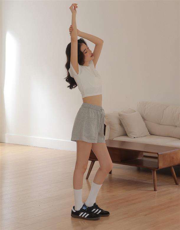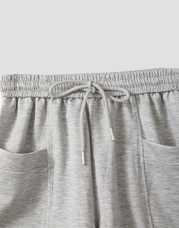 鬆軟澎彈太空棉面料,極佳親膚手感,腰圍整圈鬆緊帶抽繩,版型寬鬆,有插口袋