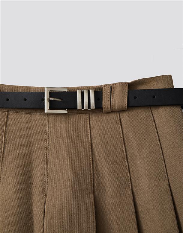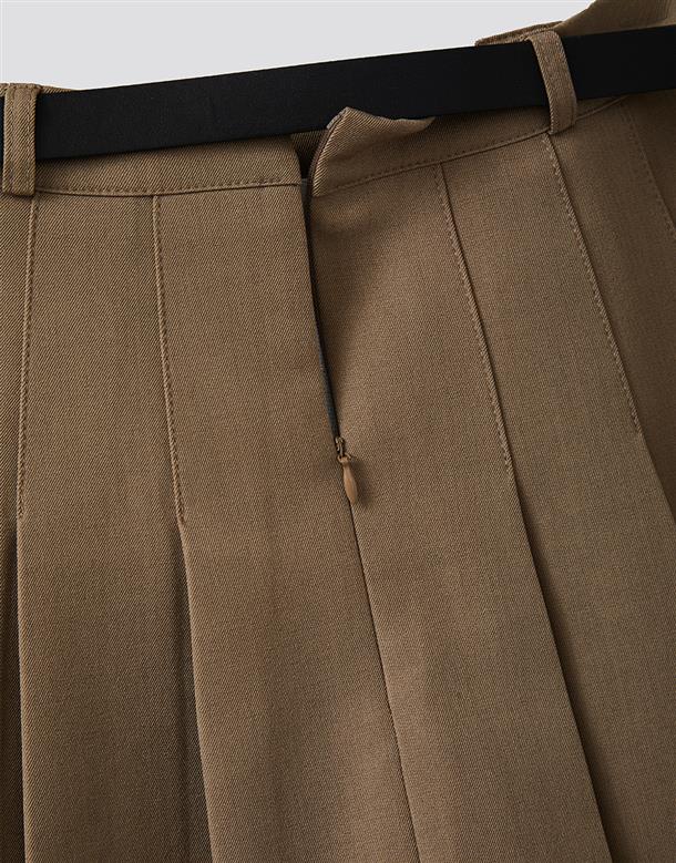 質感微參色挺版西裝面料,後中開隱形拉鍊好穿脫,內有舒適安全褲裡,附質感皮帶。