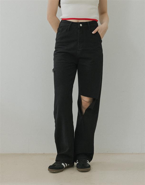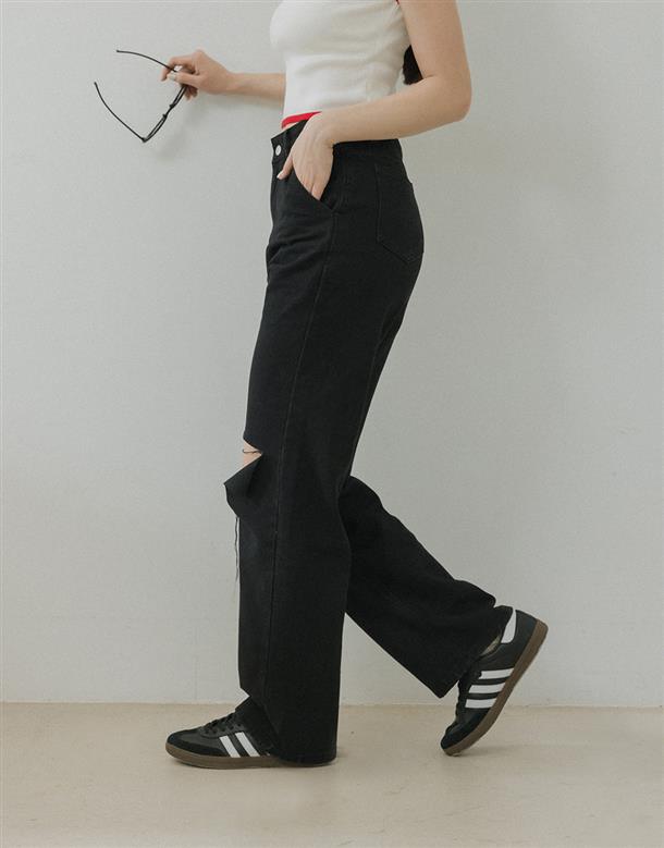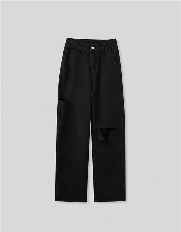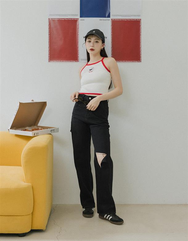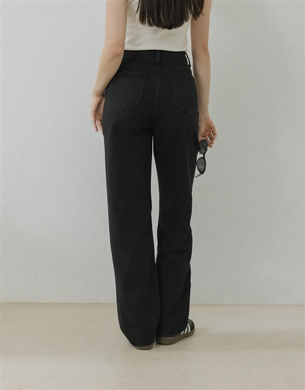 直筒寬褲版型,修飾跨寬更顯筆直長腿,面料有挺度版型更立體,百搭牛仔色及顯瘦黑色可以選擇