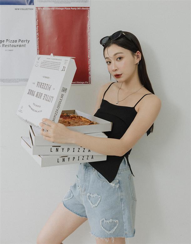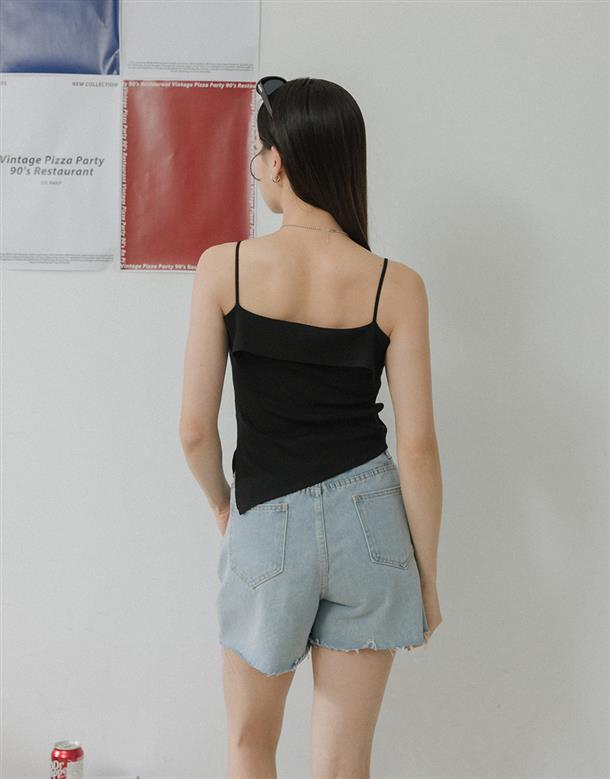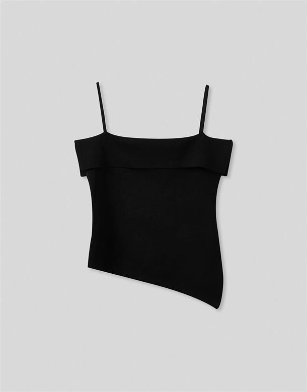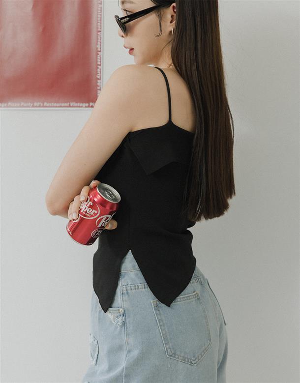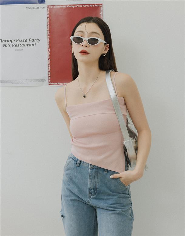 細緻質感針織,細肩帶微辣設計,不對稱下擺增添視覺豐富度,輕鬆穿出氛圍感
