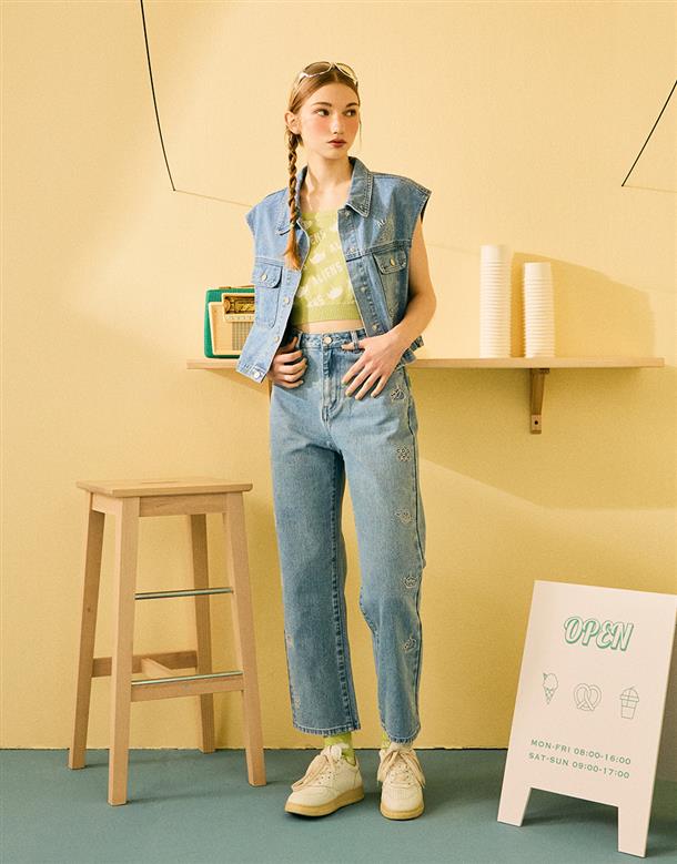 版型直筒微寬鬆順身,可與同面料背心配成套。