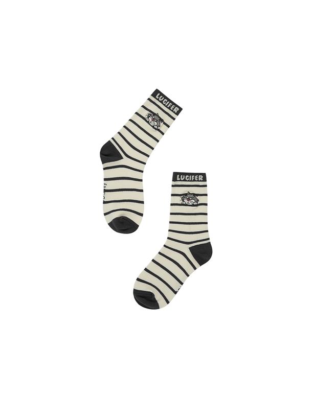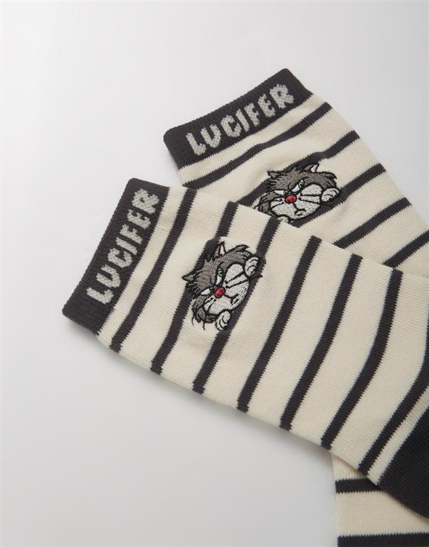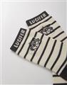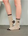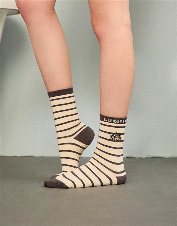 魯斯佛條紋緹花中長襪,精緻電繡中性款。