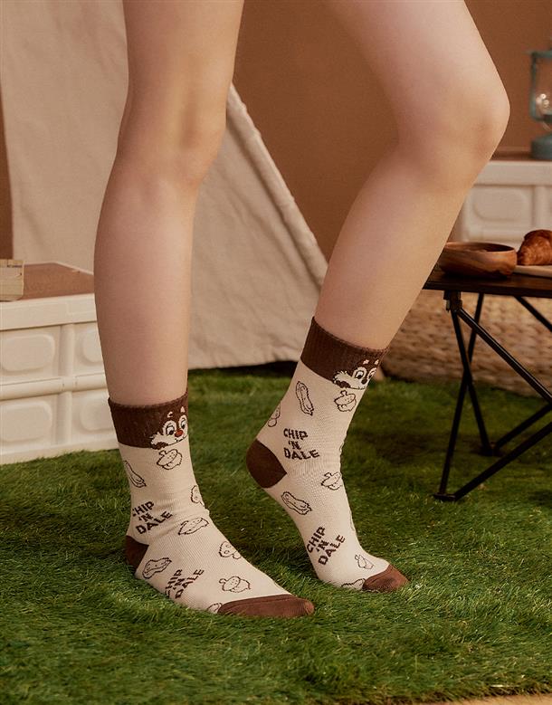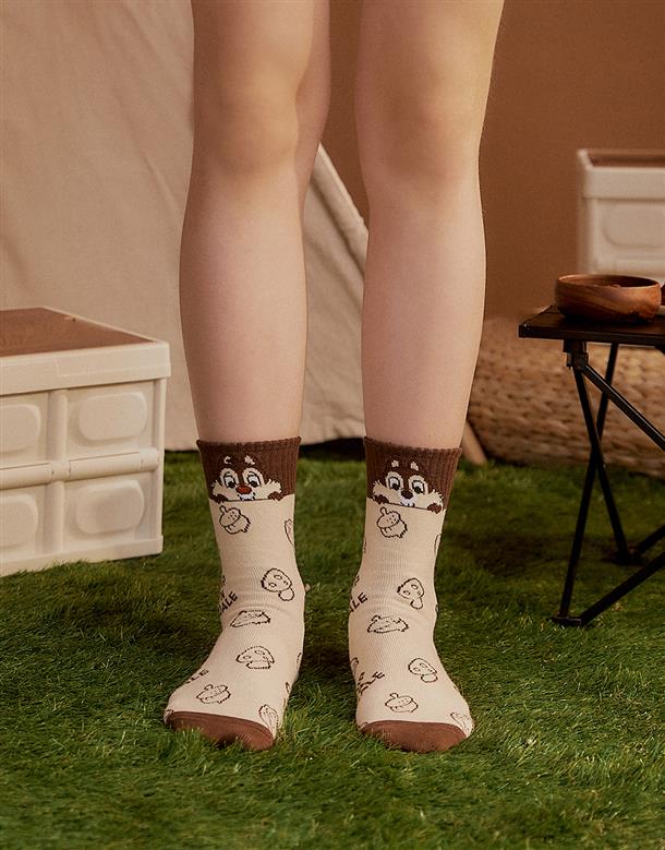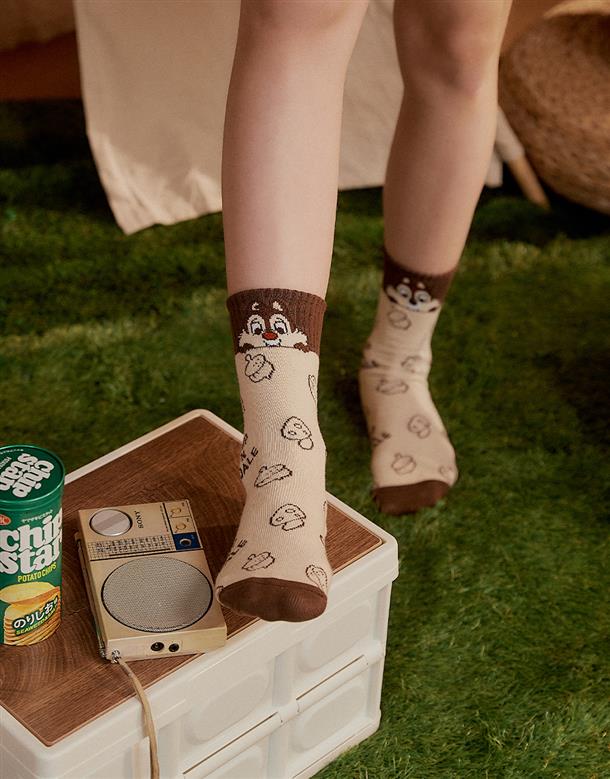 奇奇蒂蒂撞色滿版中長襪,精緻提花,中性舒適穿搭款。