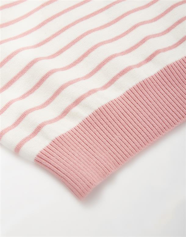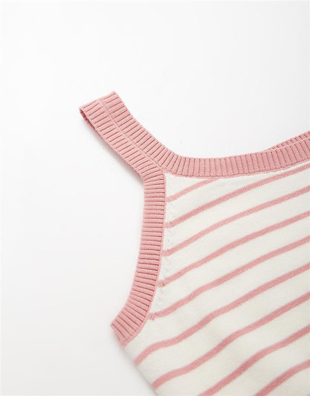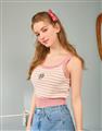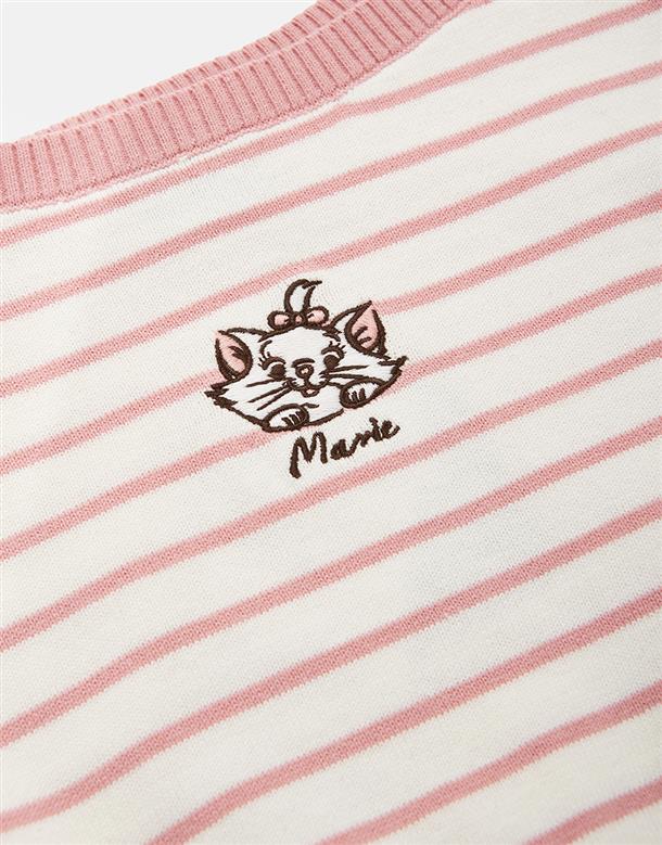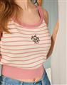 瑪麗貓精緻電繡,雙色寬細條,棉質毛織背心。