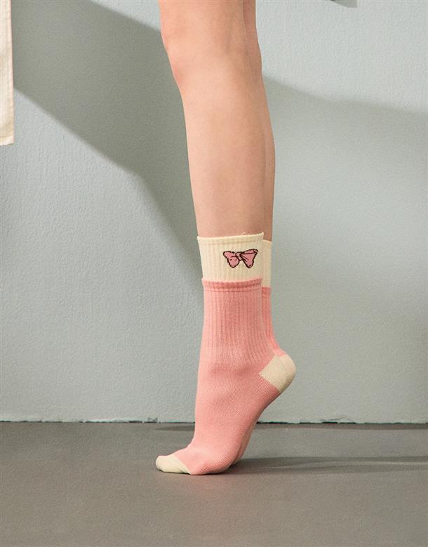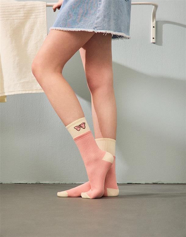 瑪麗貓雙層撞色中長襪,精緻提花,舒適穿搭款。