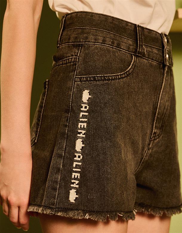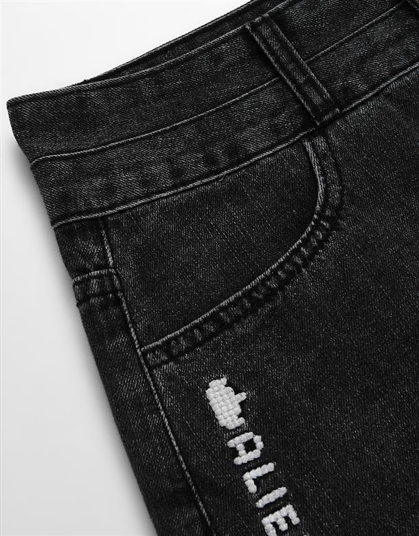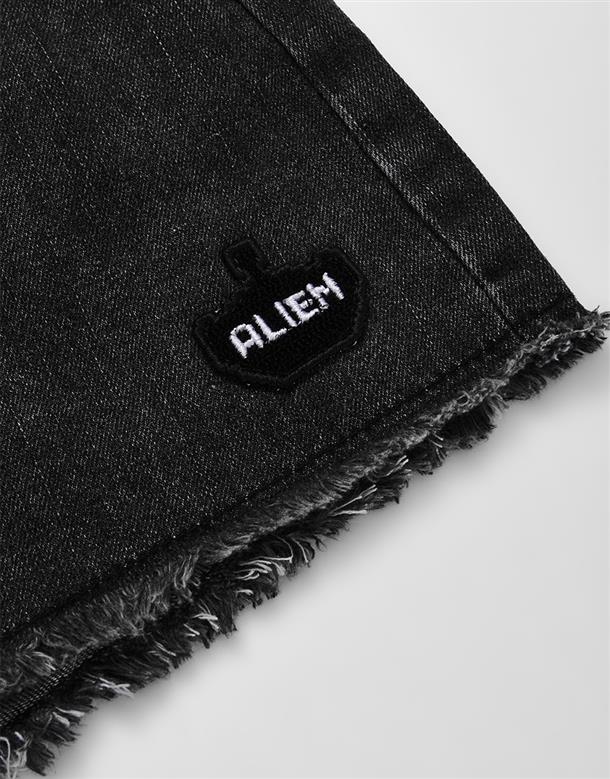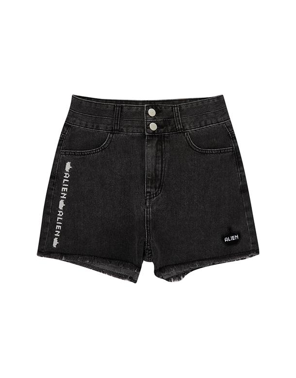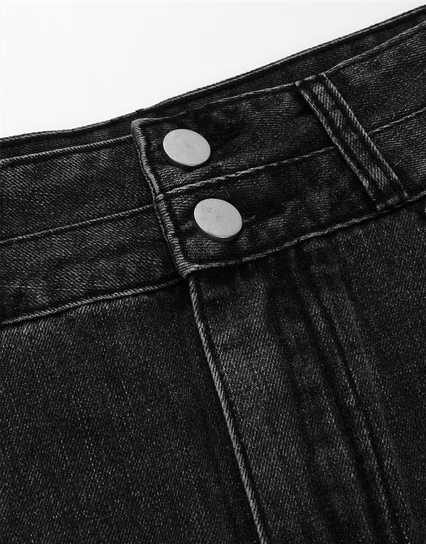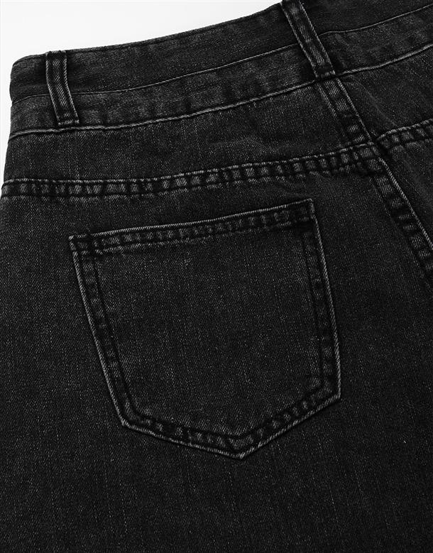 質感牛仔洗舊無彈面料,雙層造型腰頭,下擺抽鬚設計,微A自顯瘦版型,個性穿搭下身。