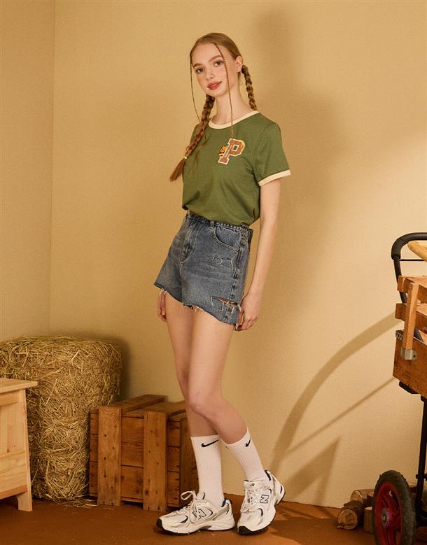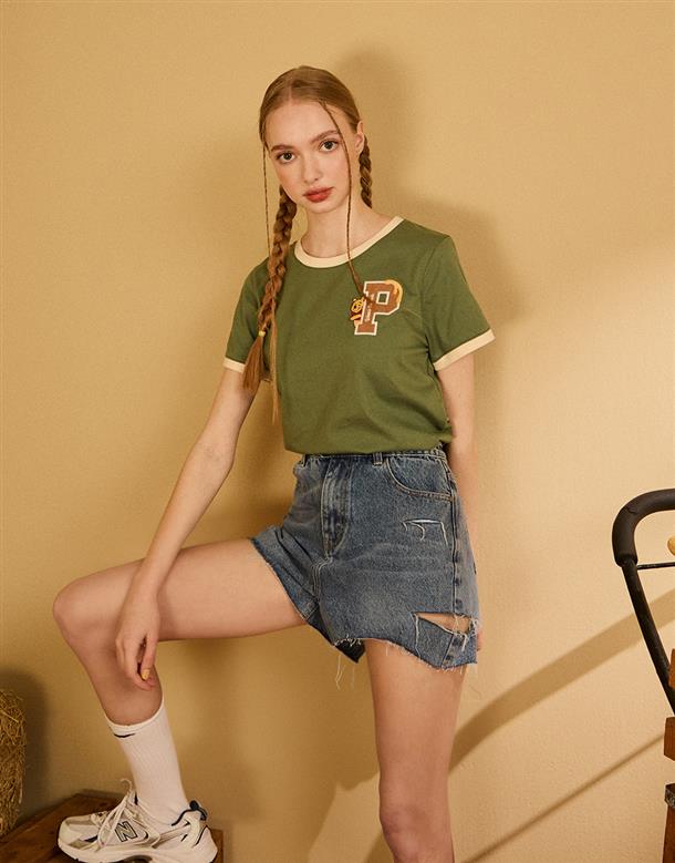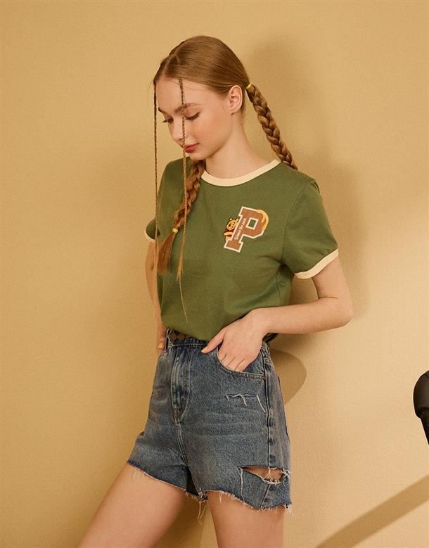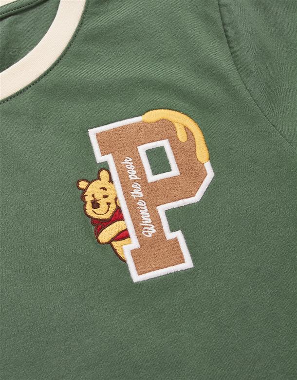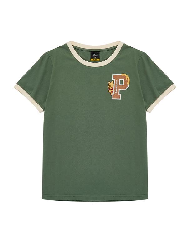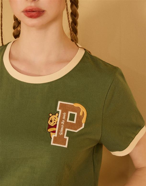 小熊維尼字母貼布繡,精緻工藝,舒柔手感面料,撞色短TEE。