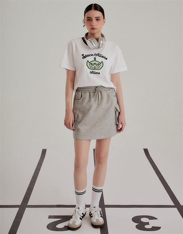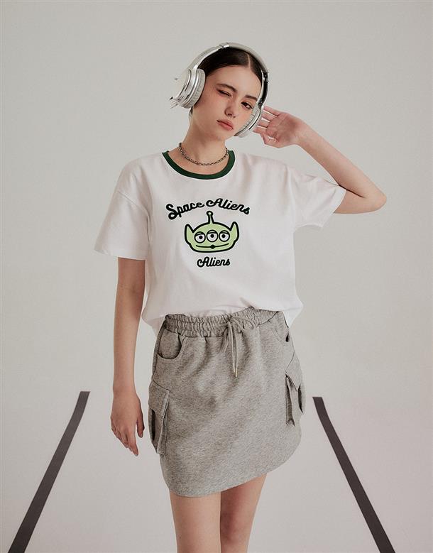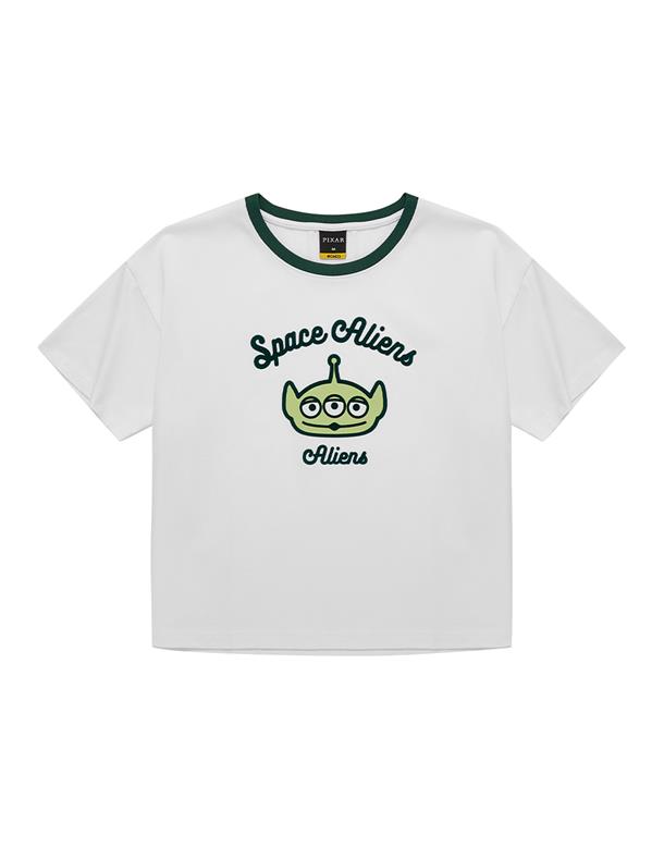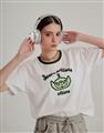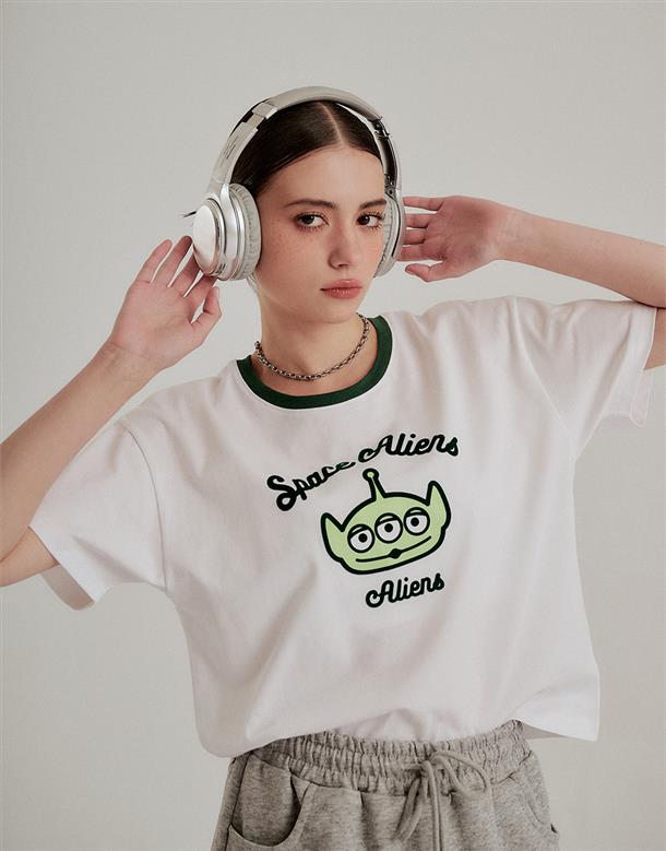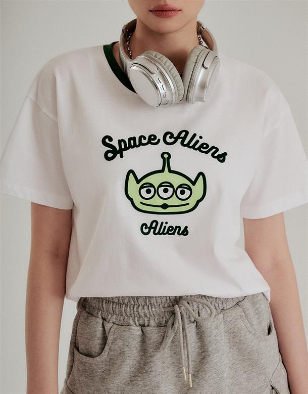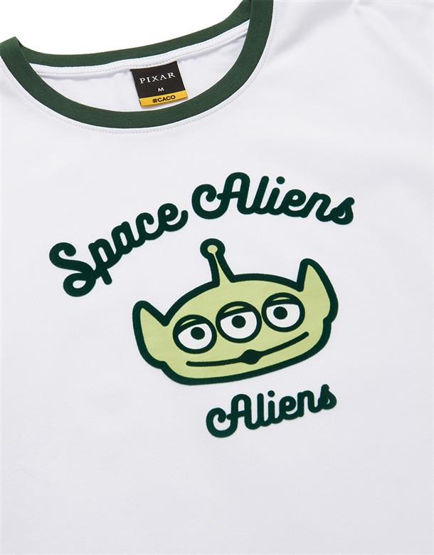 三眼怪落肩寬鬆上衣,質感植絨印花,舒適爽棉面料。