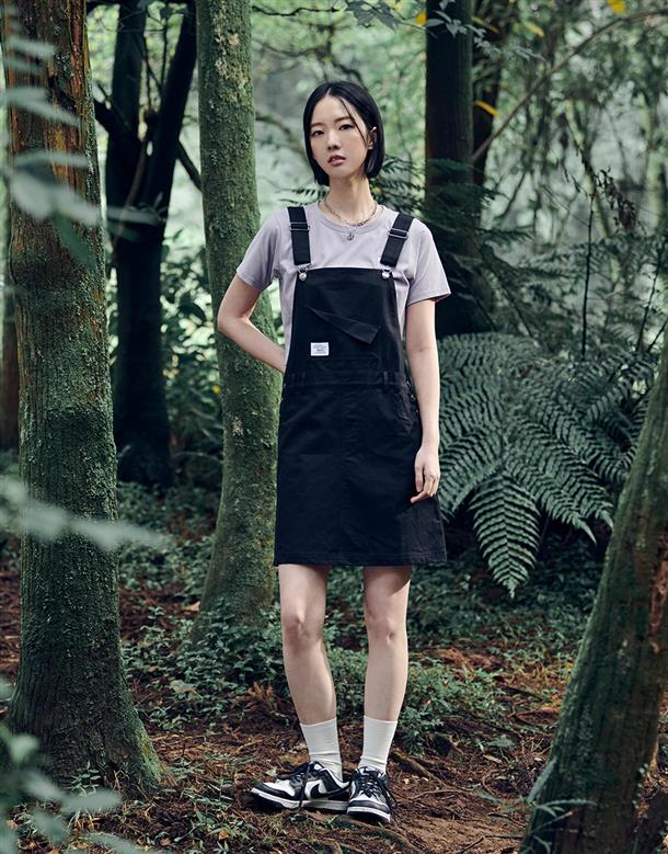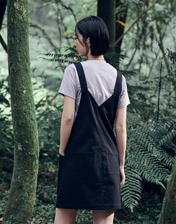 NAVY Girl百搭吊帶裙,質感斜紋面料,個性貼袋設計,後下擺開衩好活動,率性穿搭款。