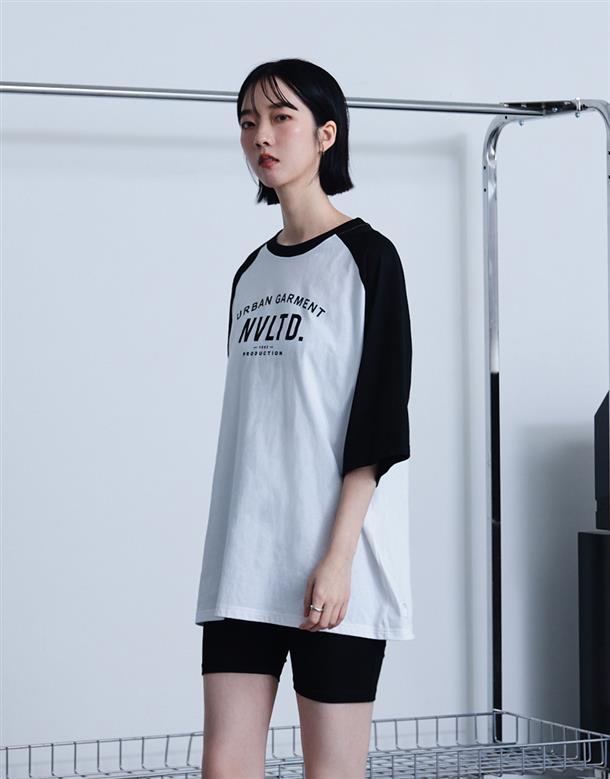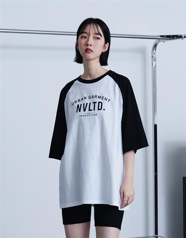NAVY Girl大寬TEE,撞色拉克蘭袖,版型寬鬆隨興,率性掛字印刷,日常棉質上衣穿搭款。