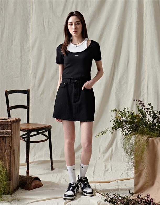 NAVY Girl微辣短裙,版型修身顯瘦,質感斜紋與抽鬚設計,個性穿搭單品。