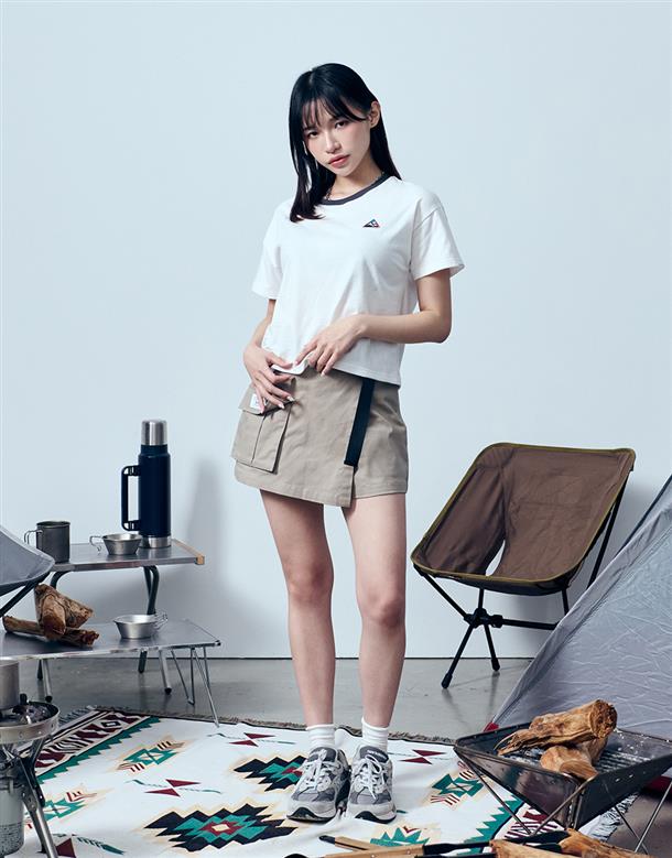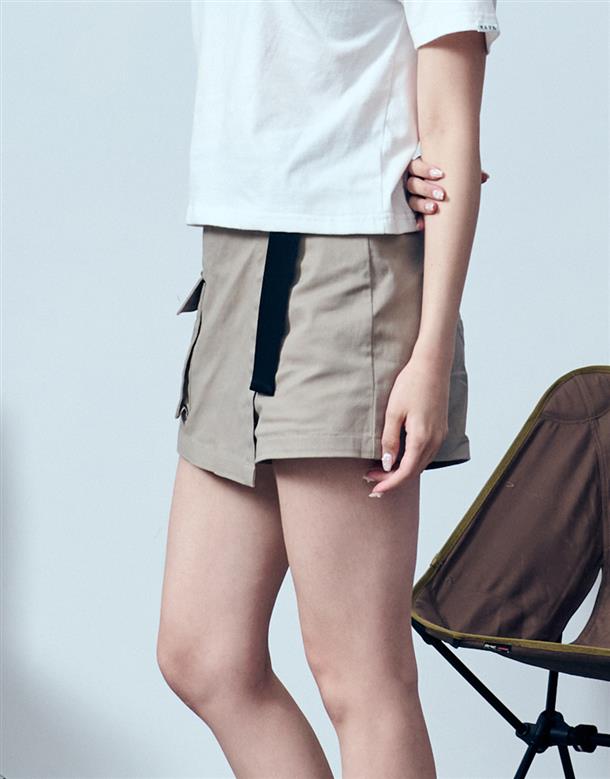 NAVY Girl穿搭褲裙,微彈斜紋布料洗水,斜片剪裁與貼袋設計,可拆式率性腰帶,工裝感下身單品。