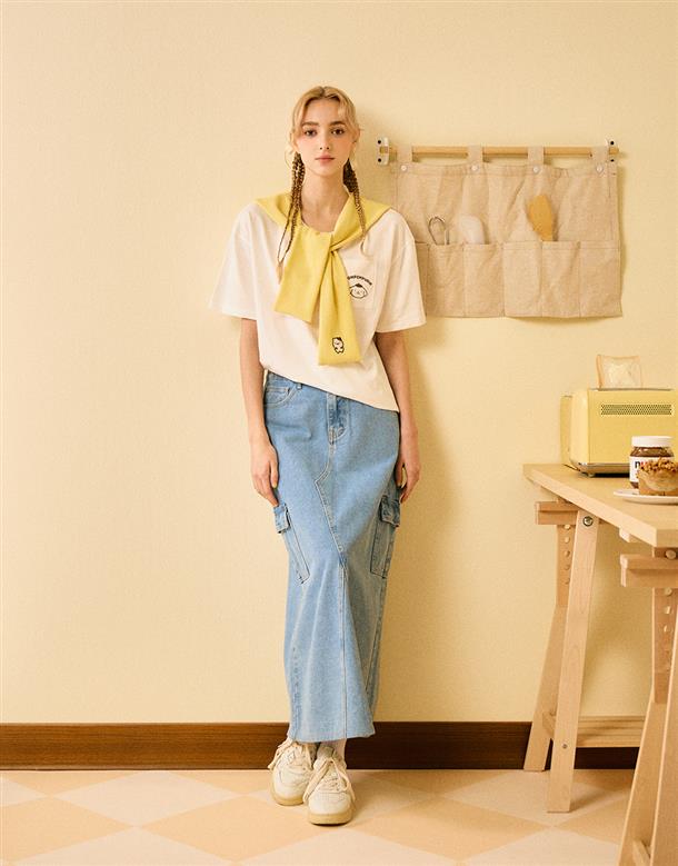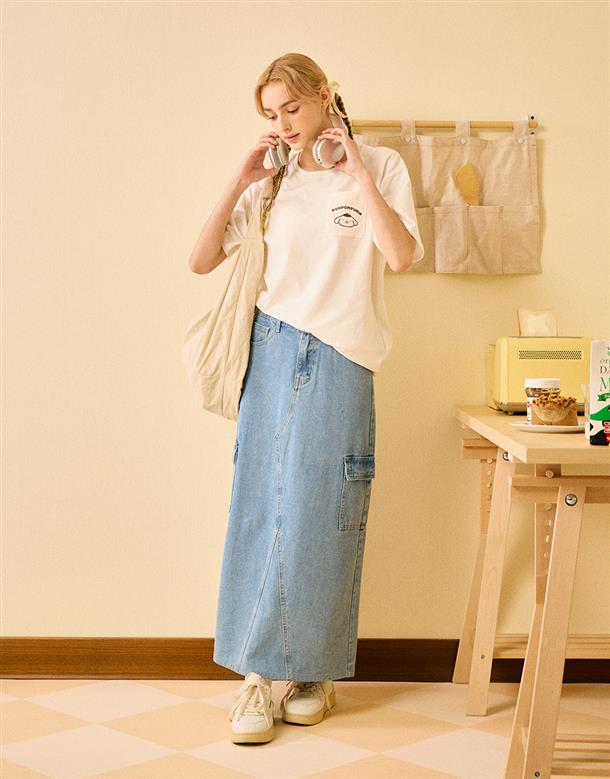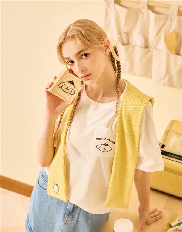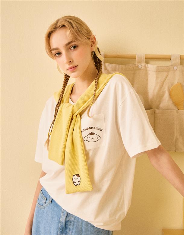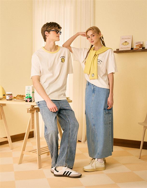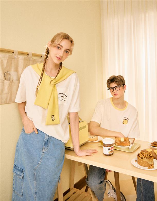 布丁狗落肩寬版上衣,質感印花,披肩穿搭設計,舒適棉質面料。
