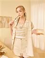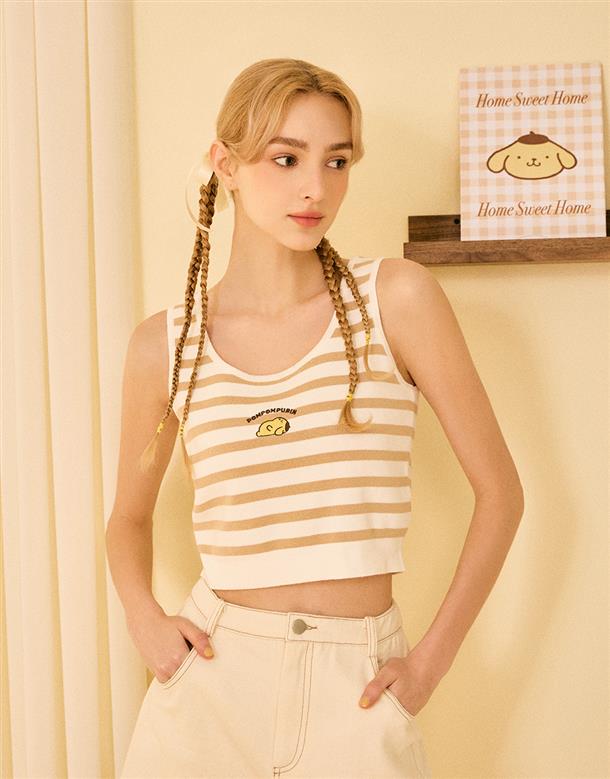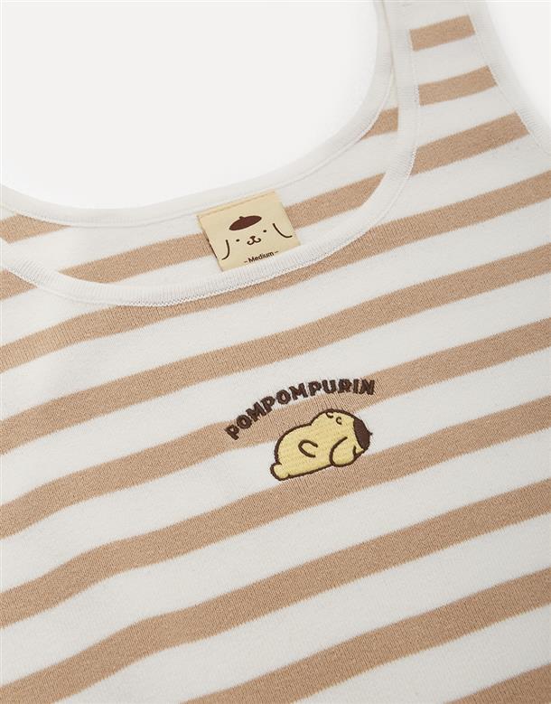 布丁狗U領設計,經典條紋,質感電繡,舒適親膚棉質針織面料。
