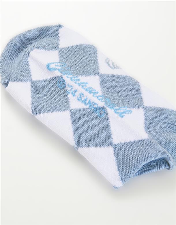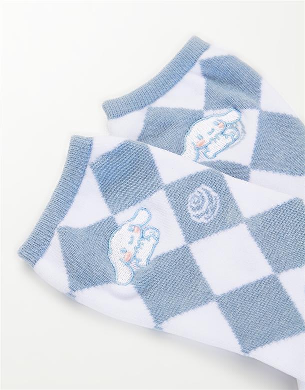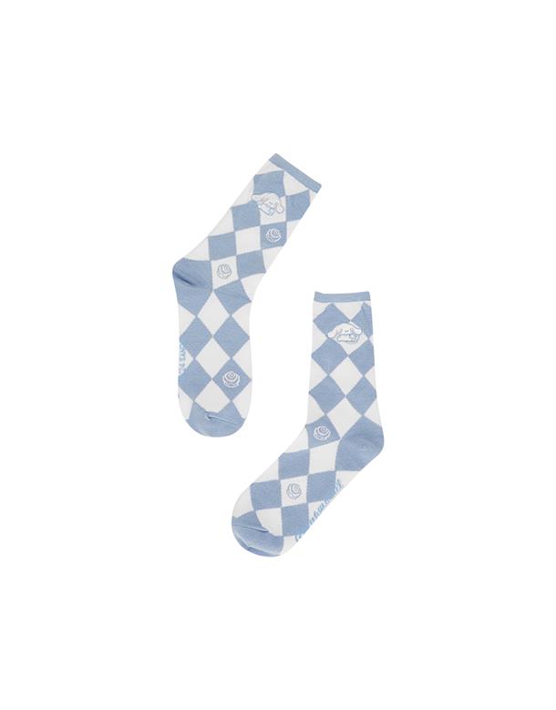 大耳狗雙色格紋提花,精緻電繡,舒適中長襪。