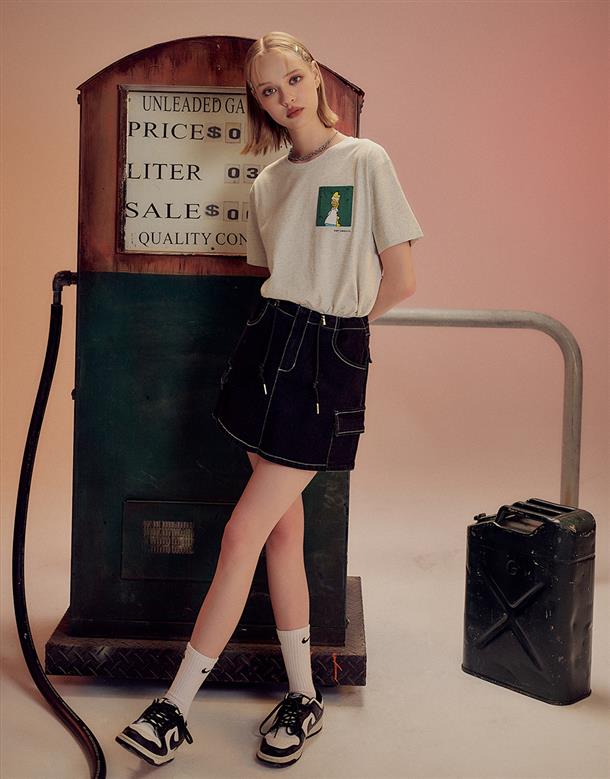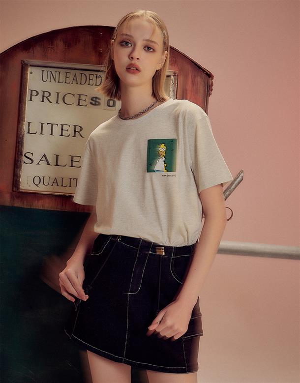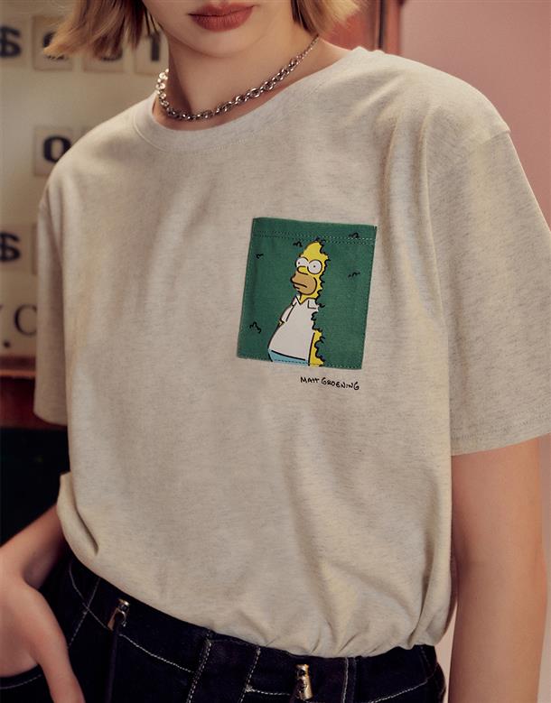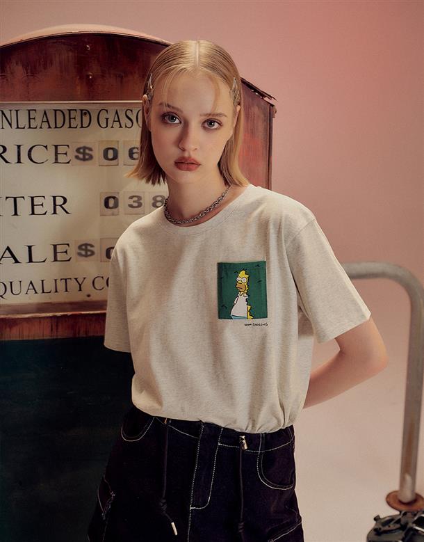 辛普森系列,舒適棉質面料,荷馬趣味貼袋印刷,微落肩寬鬆款。