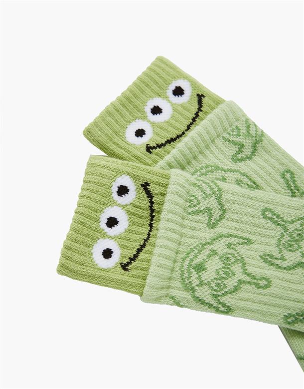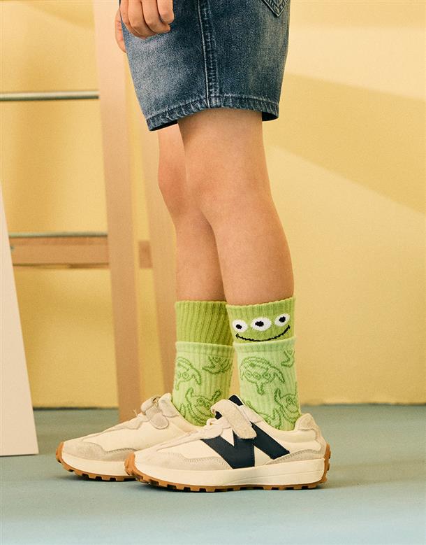 三眼怪雙層撞色中長襪,精緻提花,中性舒適穿搭款。