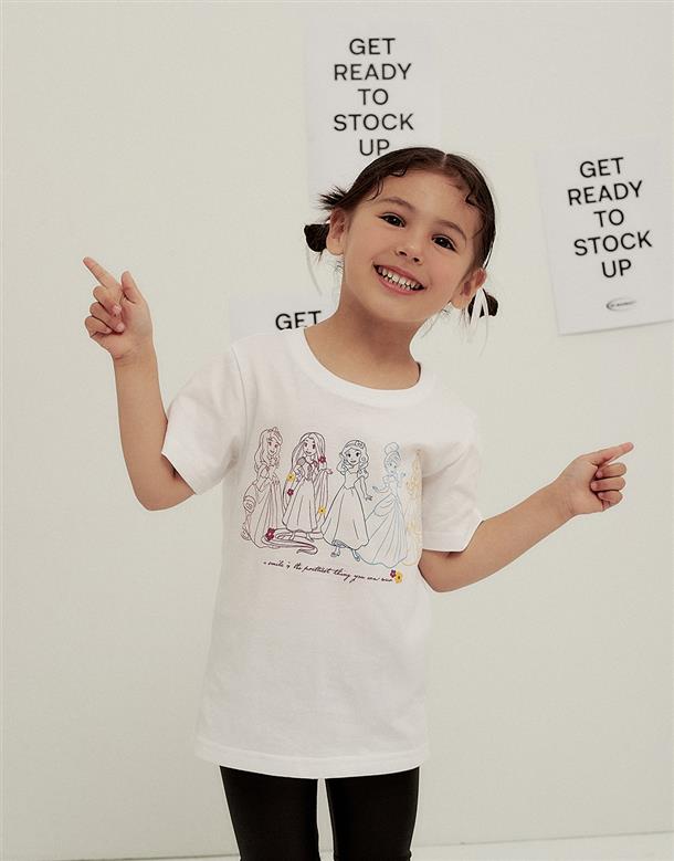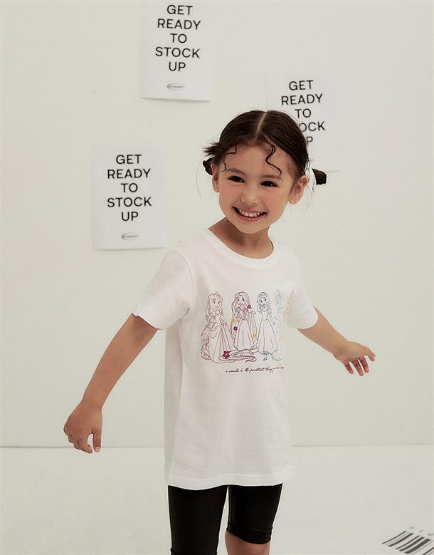 迪士尼公主集合印刷,舒適柔棉中性款短TEE。