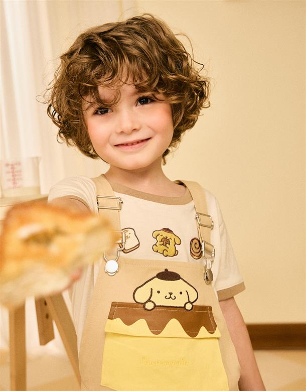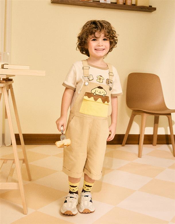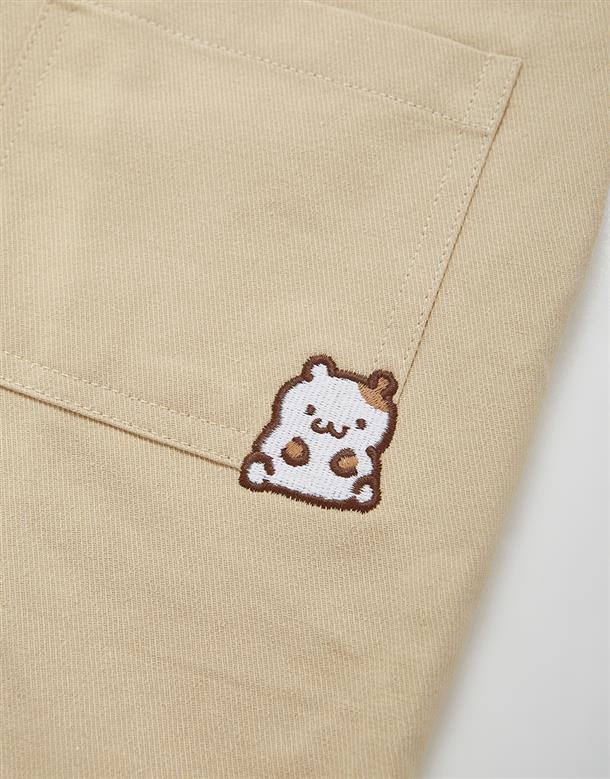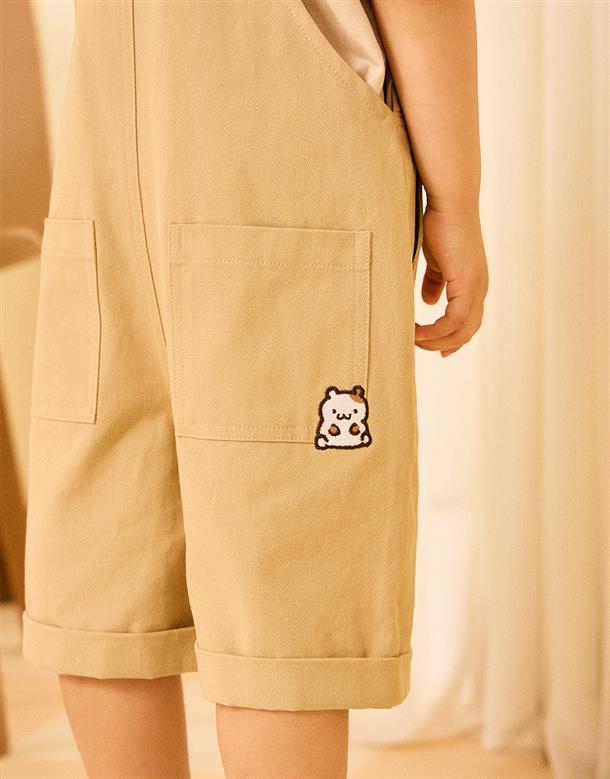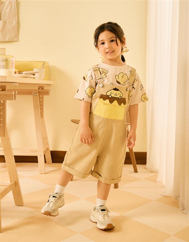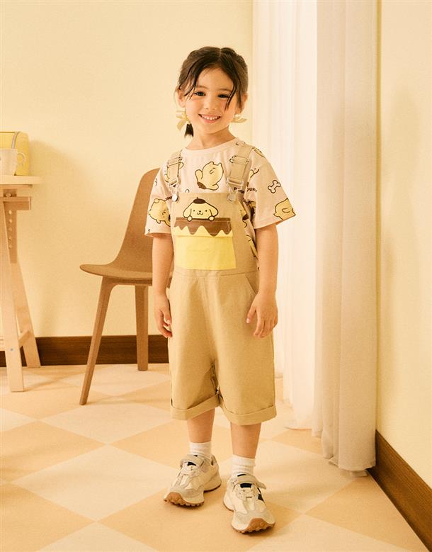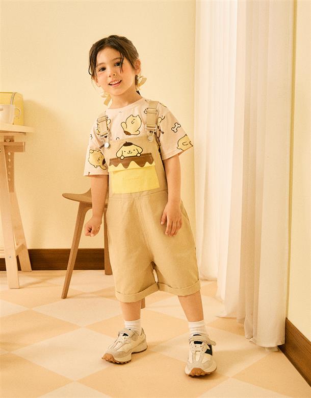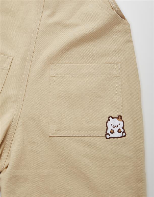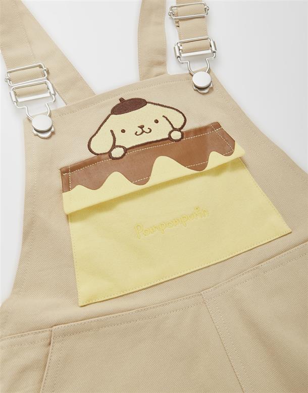 布丁狗吊帶短褲,趣味造型貼袋設計,精緻電繡,舒適斜紋面料。
