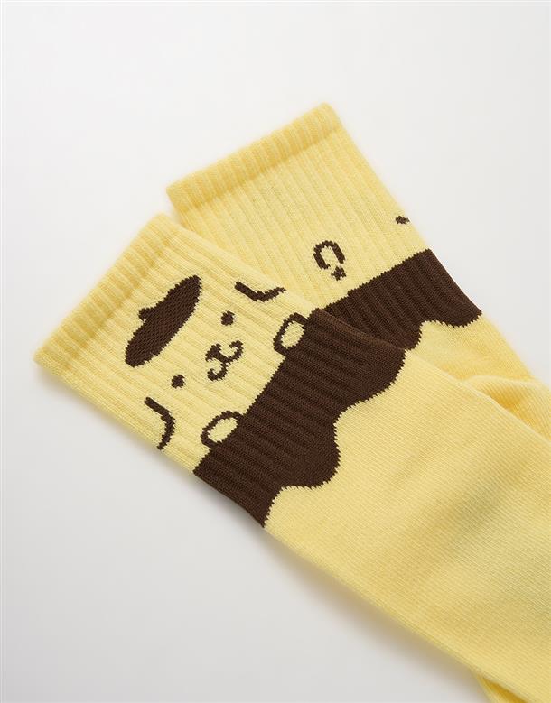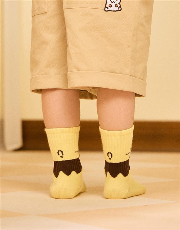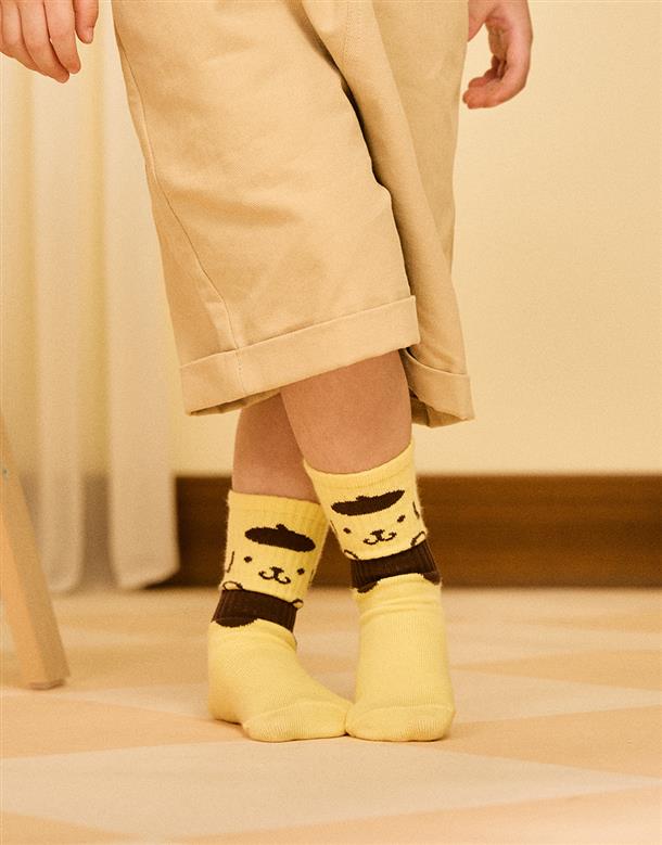 布丁狗撞色大臉緹花,舒適中長襪。