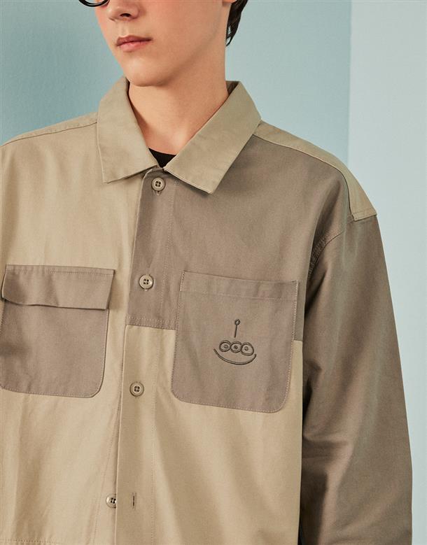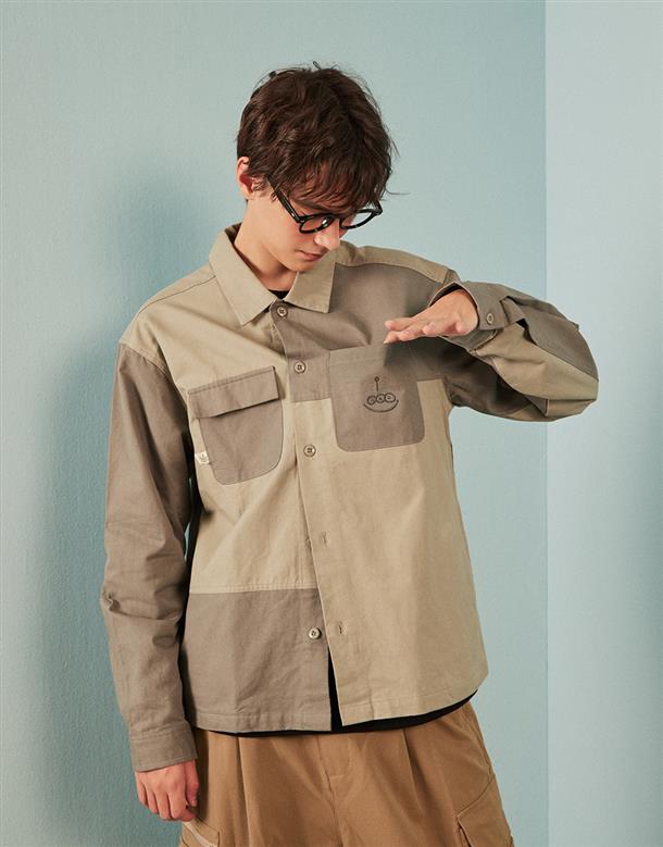 三眼怪撞色斜紋襯夾克