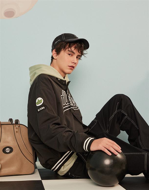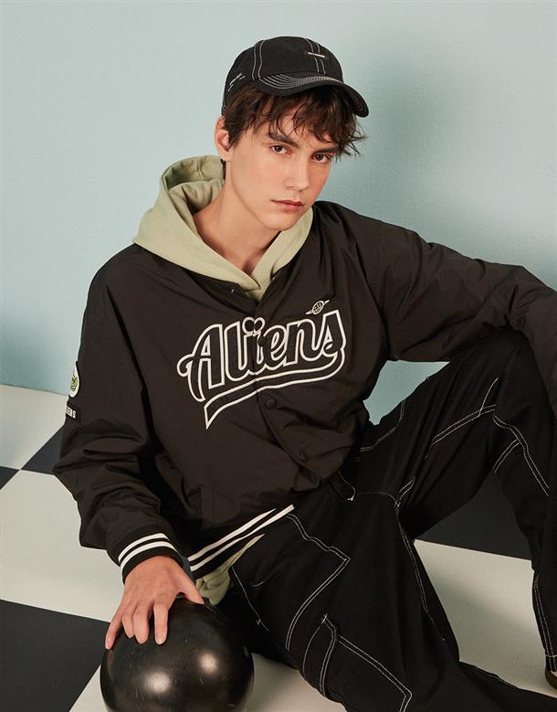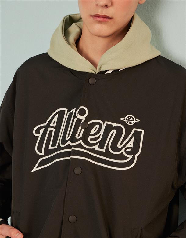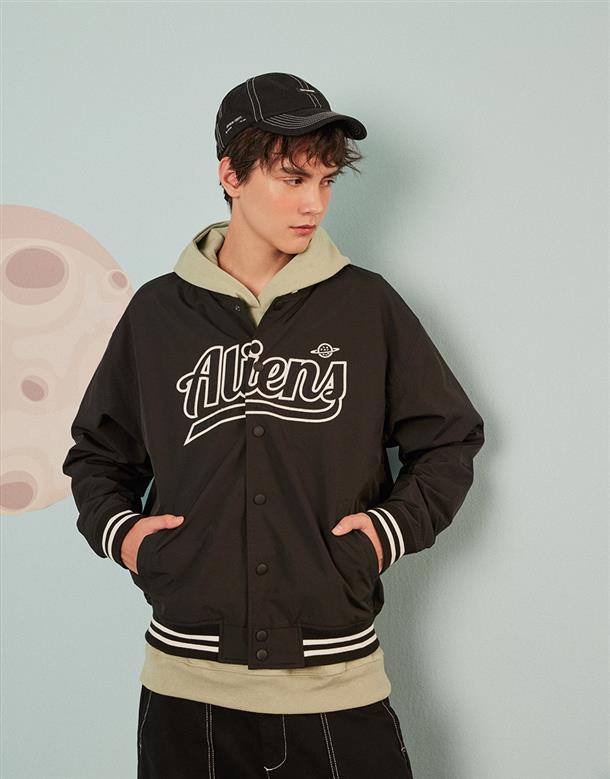 三眼怪貼布繡設計,風衣布材質寬鬆棒球外套
