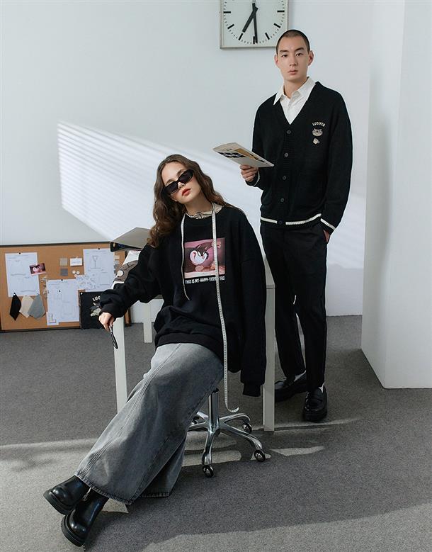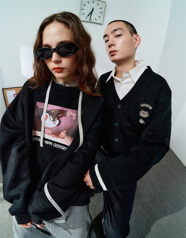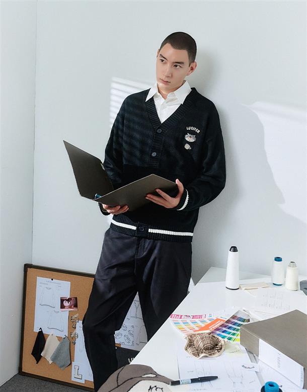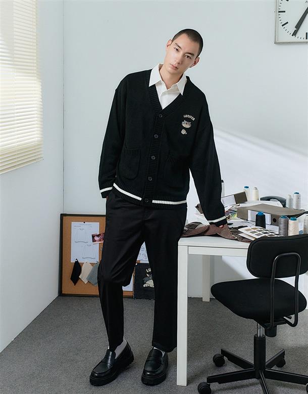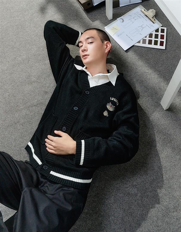 柔軟毛織撞色設計,魯斯佛圖像電繡,百搭針織外套