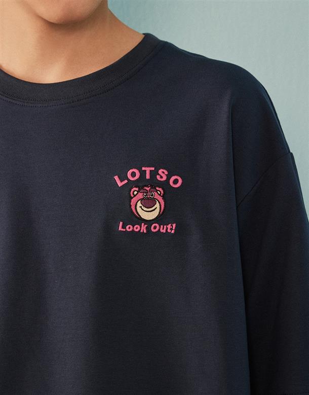 熊抱哥圖案電繡,舒適棉衛衣搭配短TEE