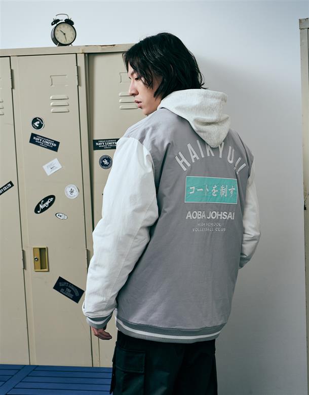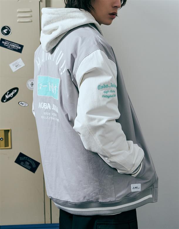 排球少年!! x NAVY,青葉城西高校電繡布章毛巾繡文字款,期間限定撞色寬鬆棒球外套