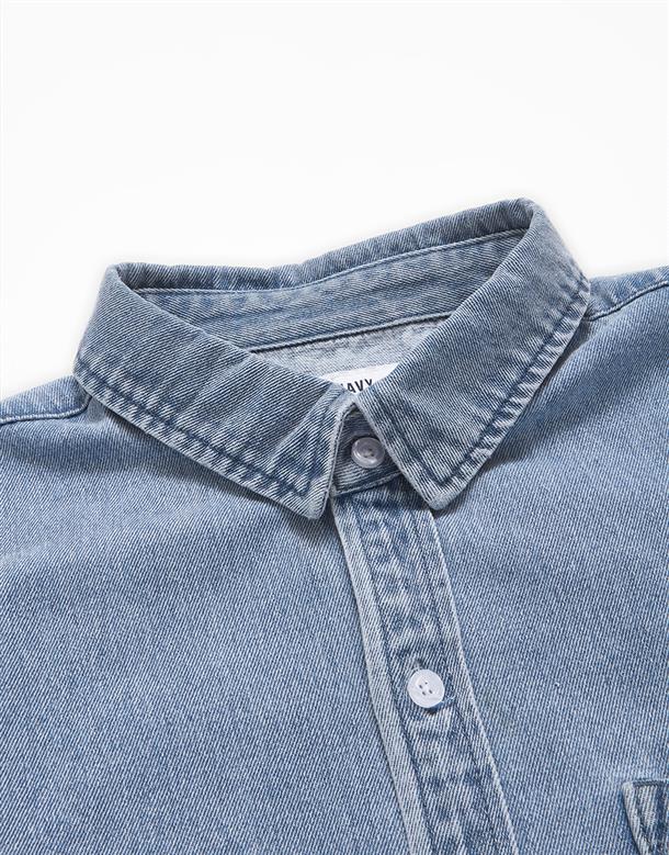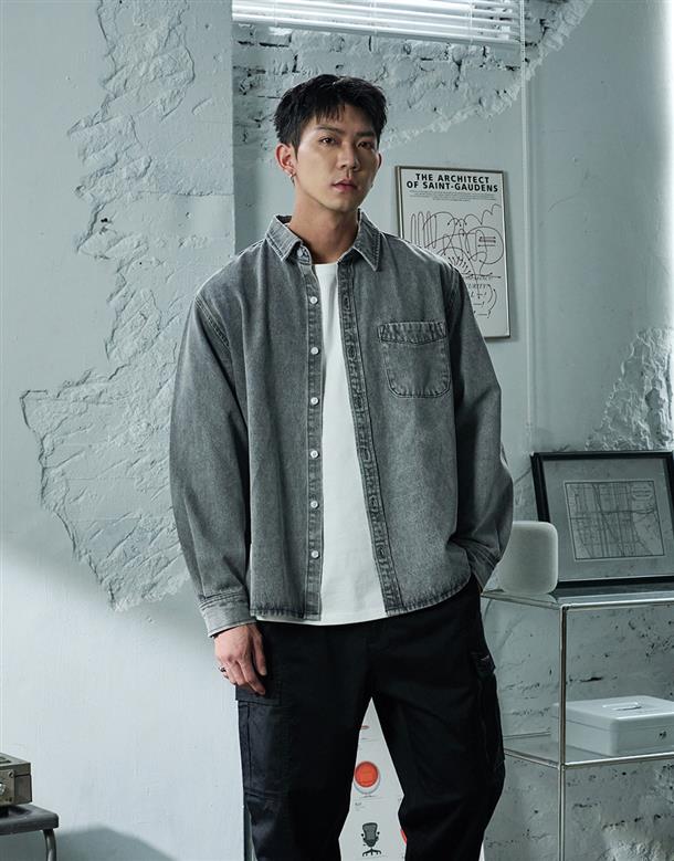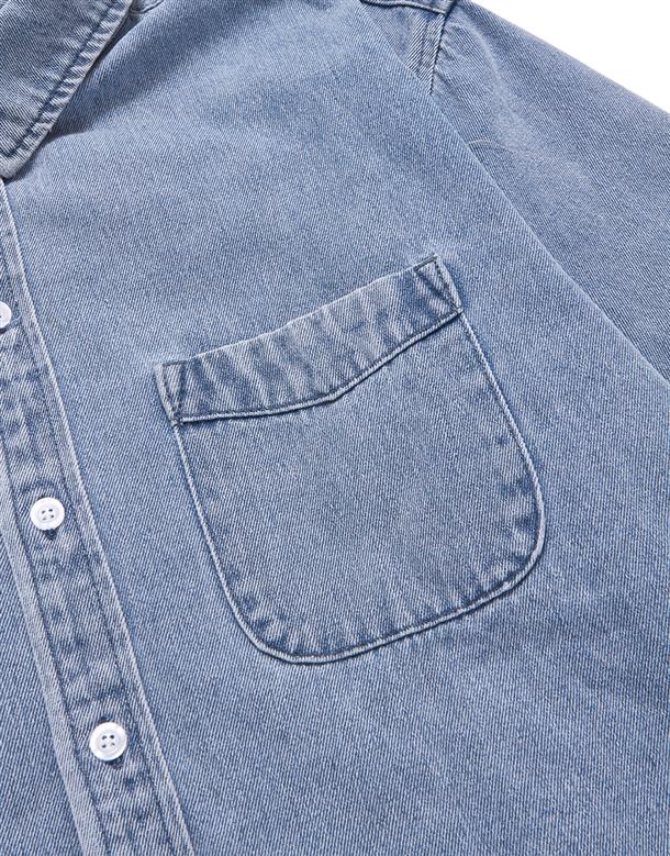 秋冬基礎搭配款,單寧面料水洗落色牛仔襯衫