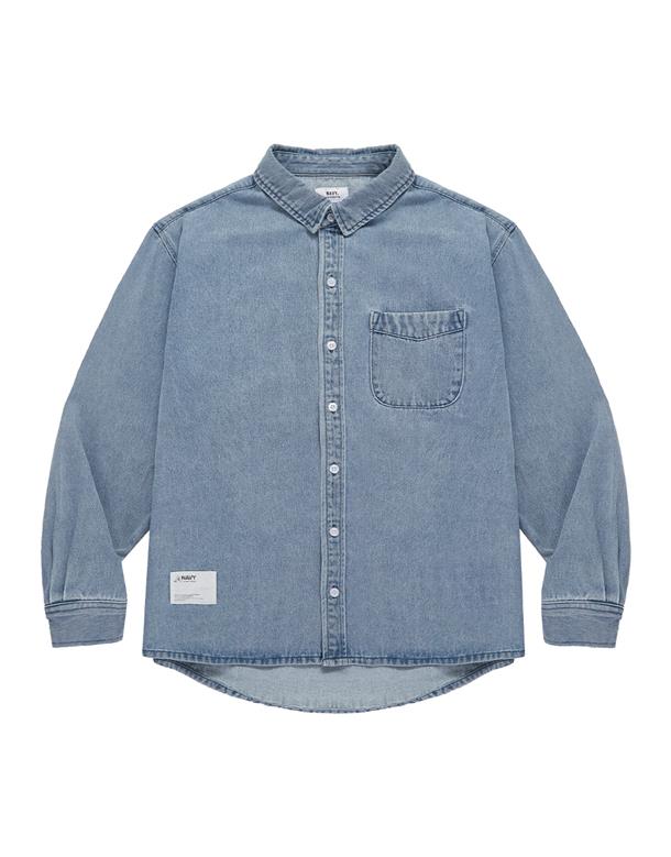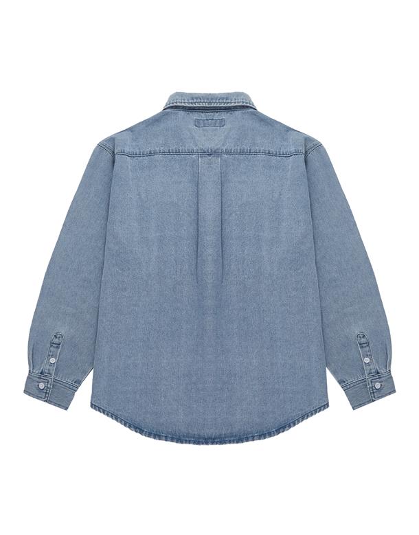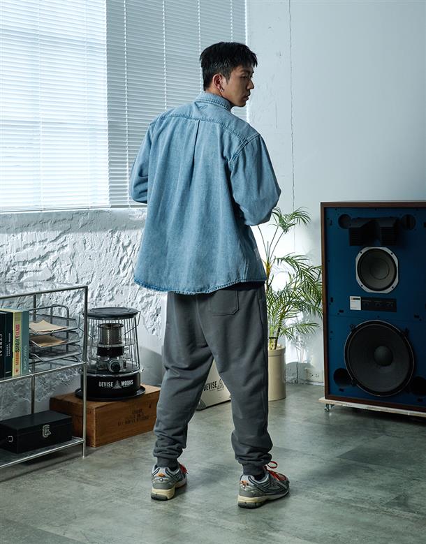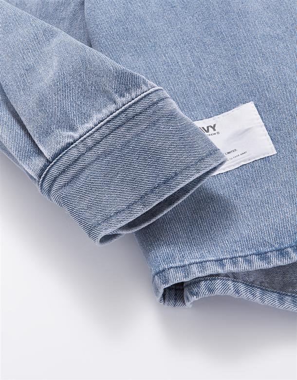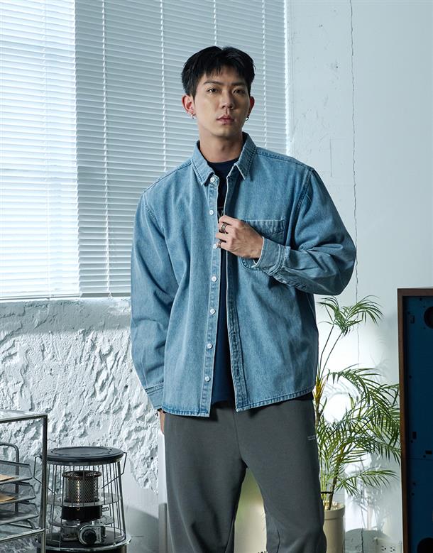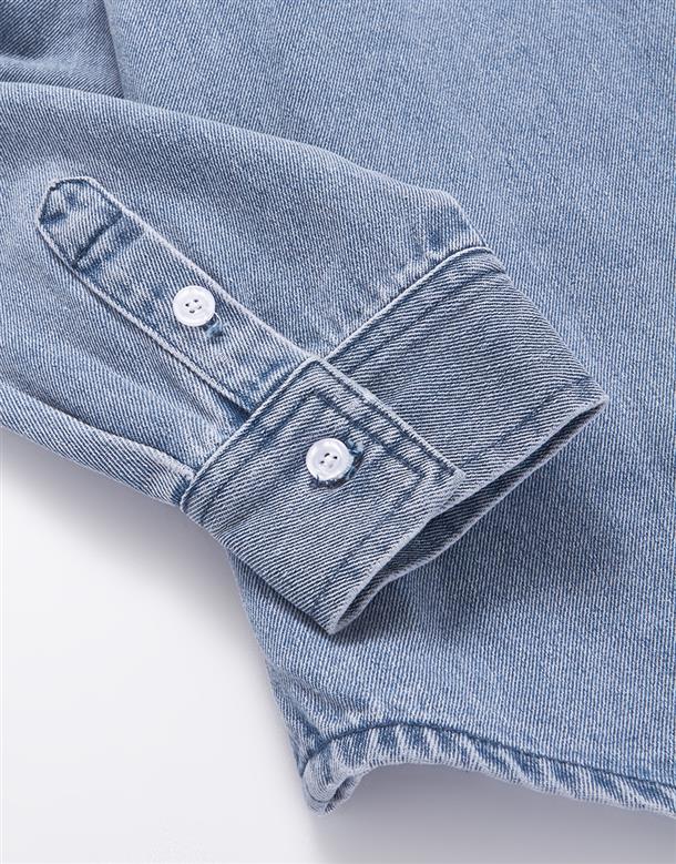 秋冬基礎搭配款,單寧面料水洗落色牛仔襯衫