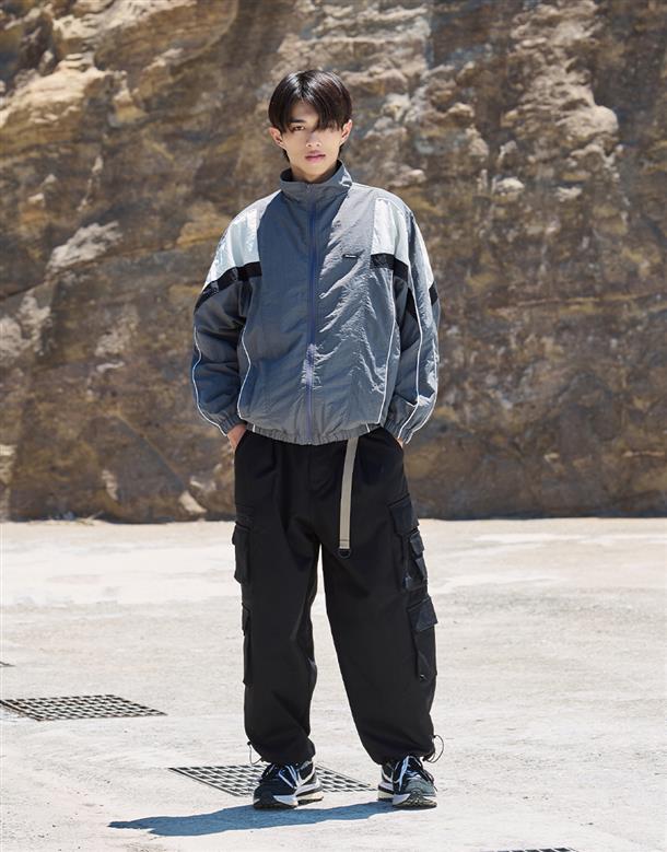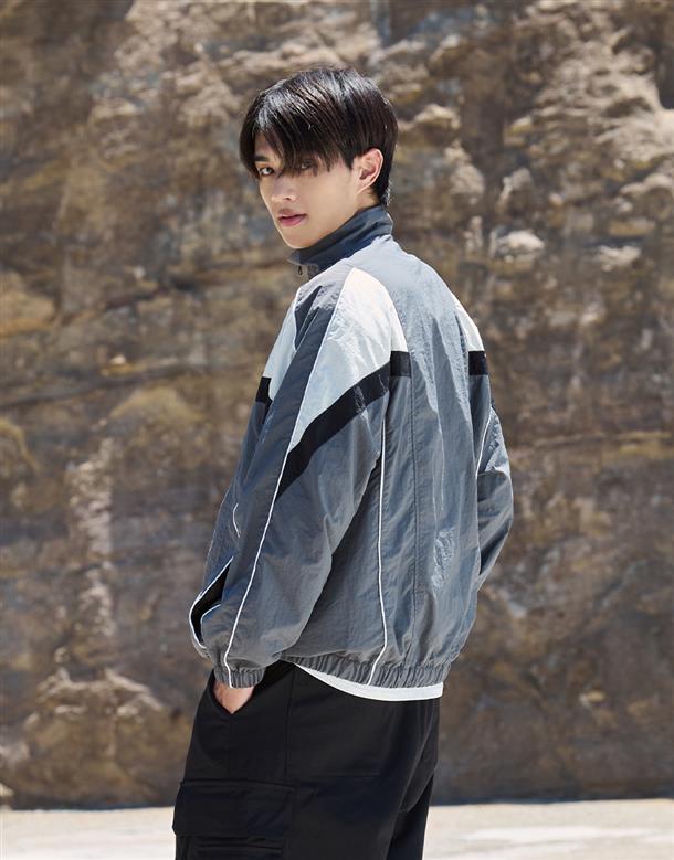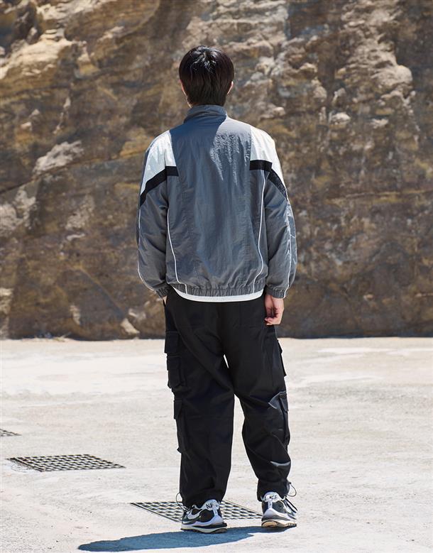 立領造型,撞色剪裁運動風格風衣外套
