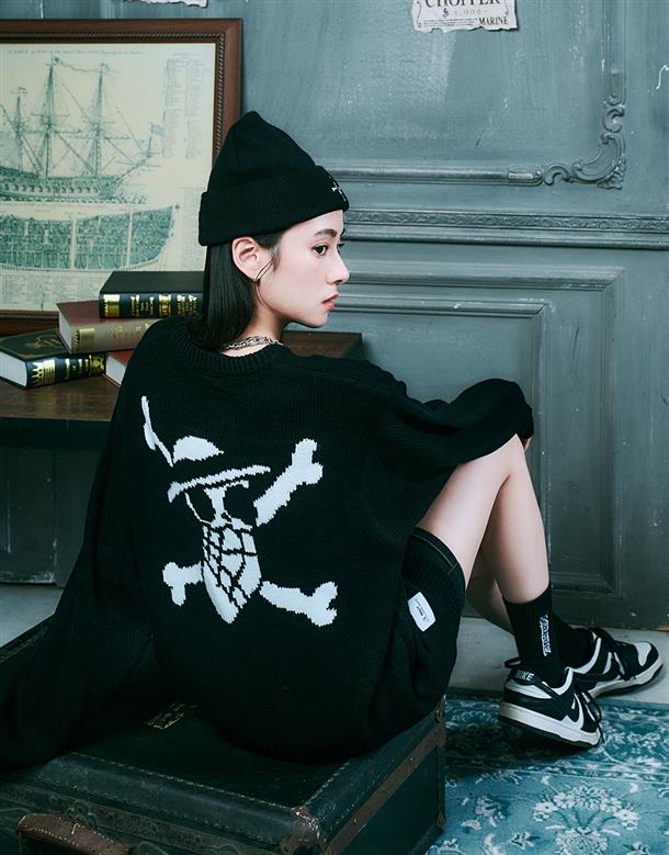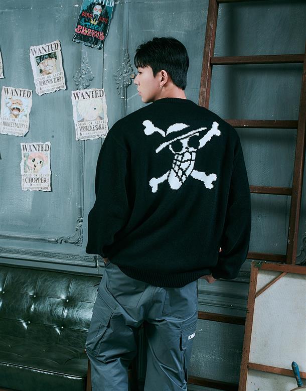 NAVY x 航海王動畫版期間限定,草帽海賊緹花圖案,穿搭款保暖毛衣