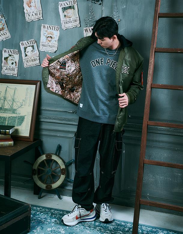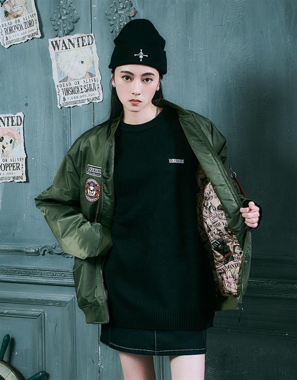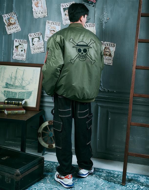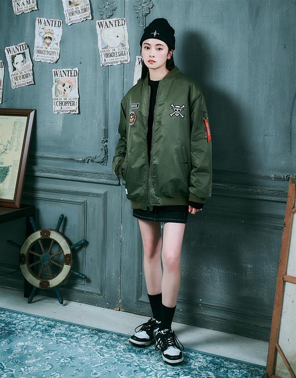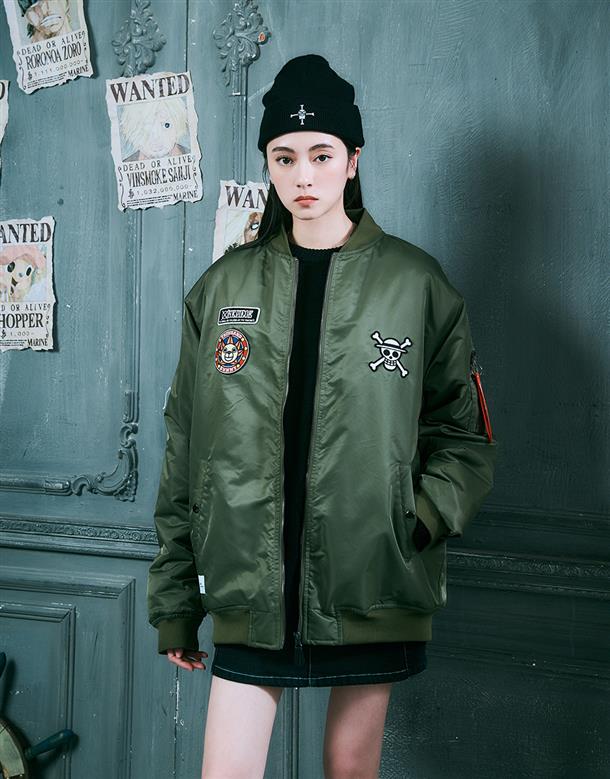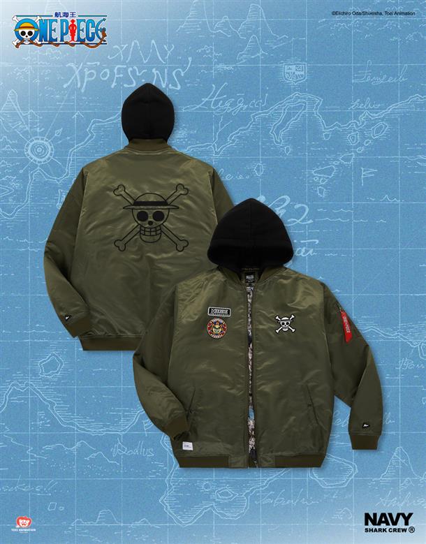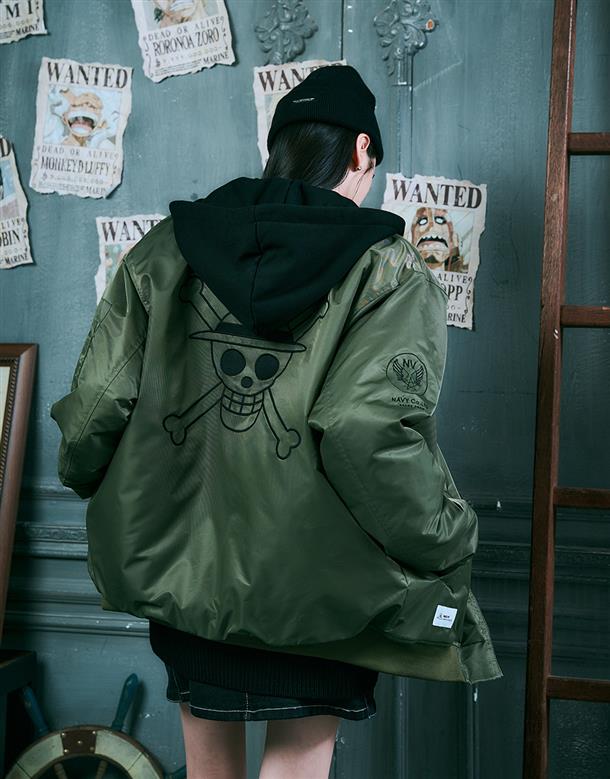NAVY x 航海王動畫版期間限定,千陽號布章款,可拆帽內裡鋪棉保暖MA-1 外套