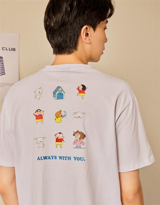小新小白日常圖案設計,質感印刷工藝,寬鬆落肩短T