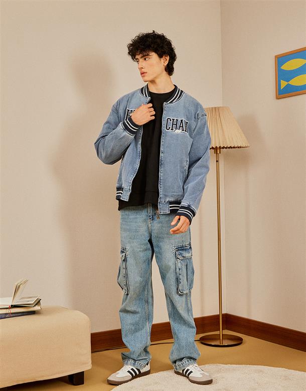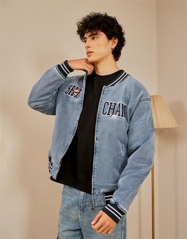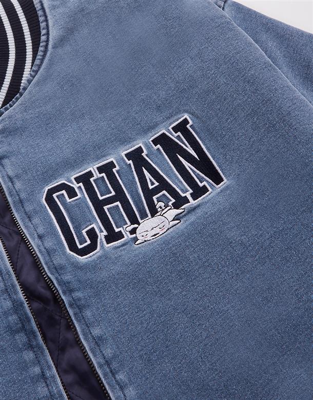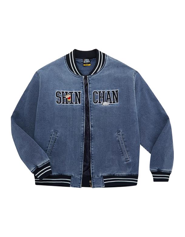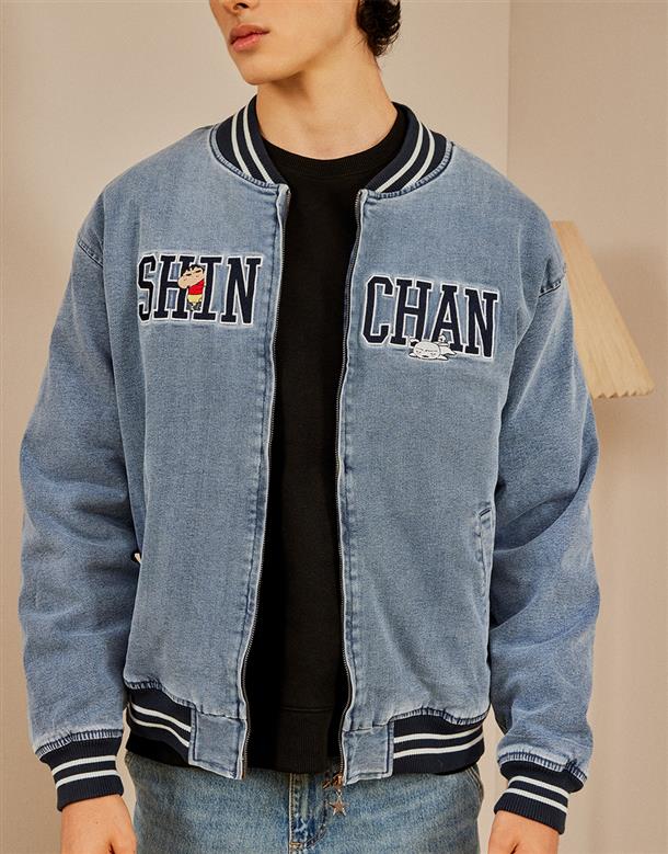 蠟筆小新星星拉鍊頭造型,洗水牛仔拉鍊外套