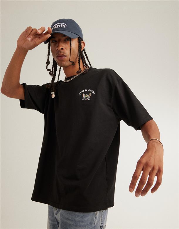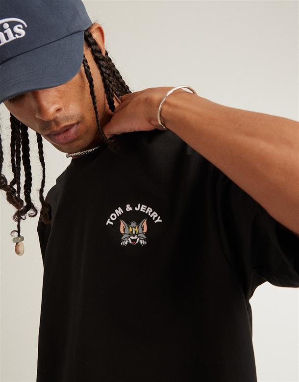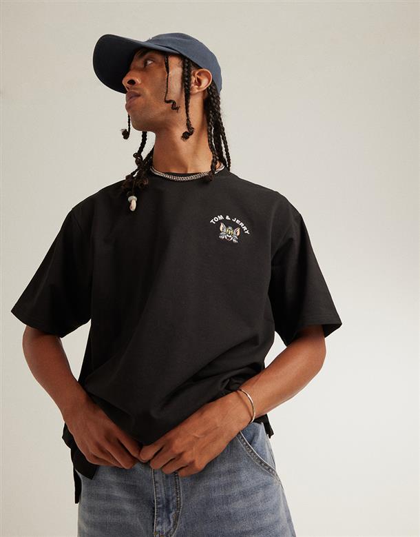 湯姆貓圖案電繡,舒適棉衛衣搭配短TEE