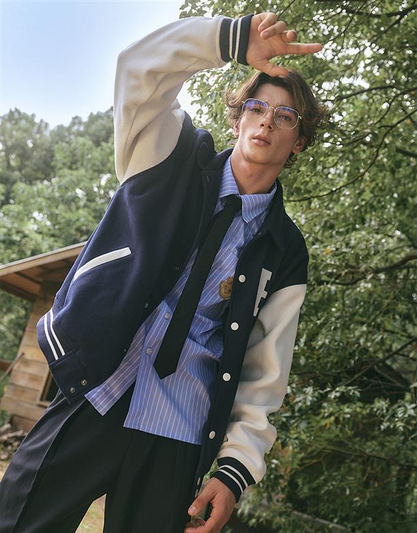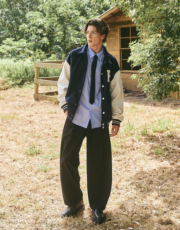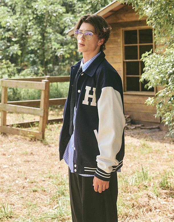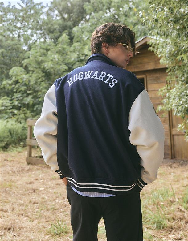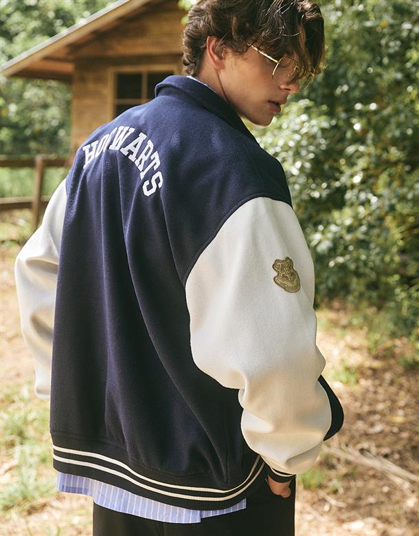 哈利波特系列,霍格華茲舒適質感毛呢材質棒球外套,左胸圖案可搭配魔鬼章布章