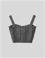 鈎針毛織紗線,立體麻花設計,前中綁繩可自行調節鬆緊,可內搭小可愛或T恤襯衫