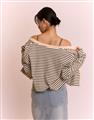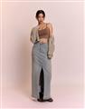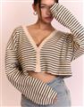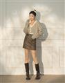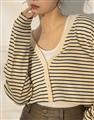 條紋立體鬆餅格面料,V領版型修飾臉部線條,短版版型拉高比例更顯高