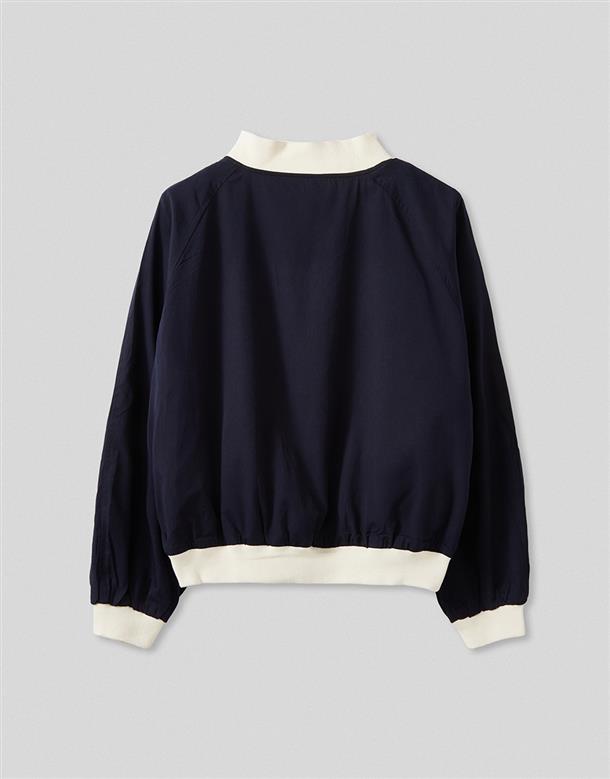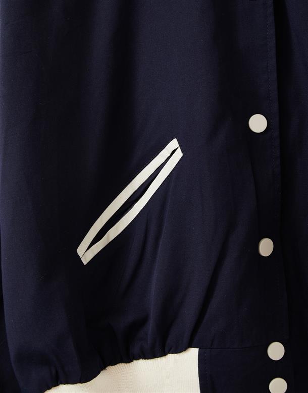 輕薄斜紋棉面料,有內裡質感佳,版型寬鬆,簡約撞色設計,胸前配色刺繡
