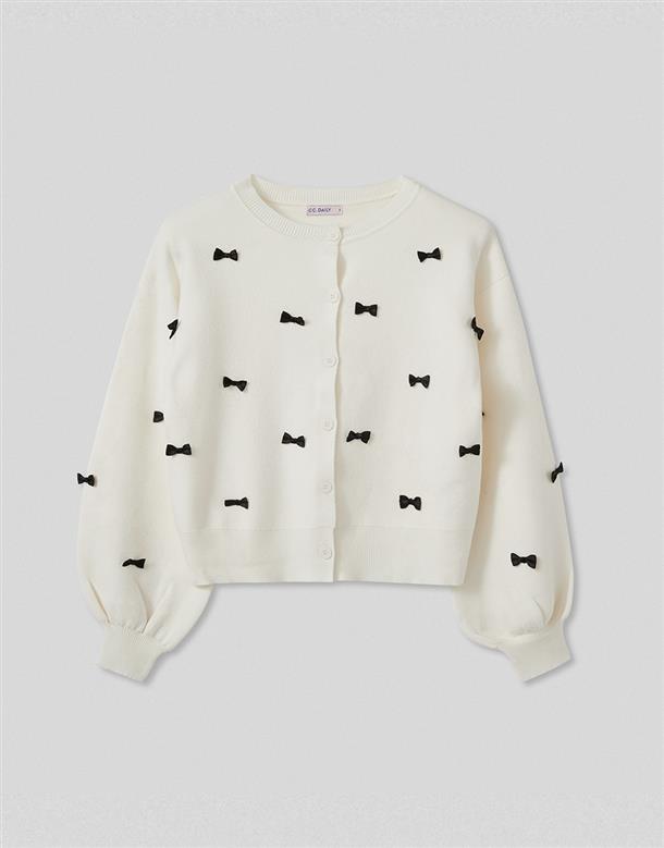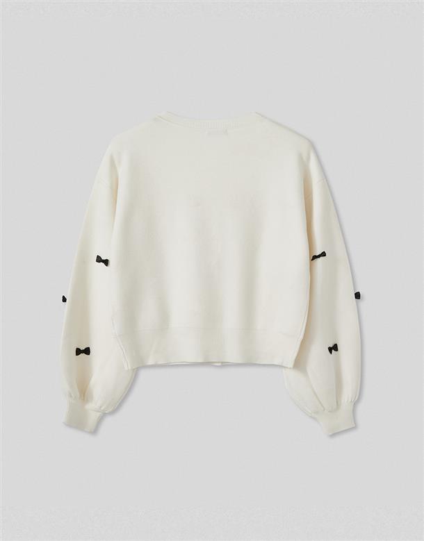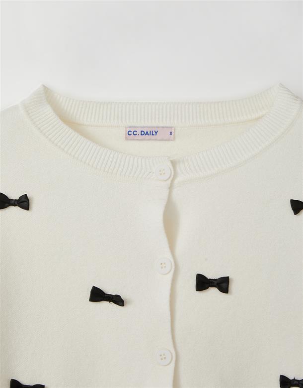 質感親膚包芯紗,版型微寬鬆,車固定緞面立體蝴蝶結,上衣外套兩穿